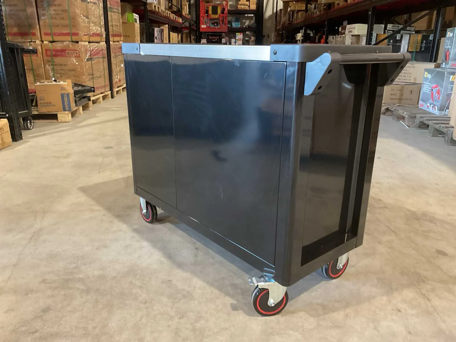 Voorzien van 7 lades waarvan 7 gevuld met gereedschap; zijdeur; professioneel chroom-vanadium gereedschap; heavy duty gereedschapswagen; 4 wielen; stevig handvat; ongebruikt in doos (transport afmetingen 110x50x80 cm) Merk: Stahlbär Type: Deutschland jumbo Bouwjaar: 2025 Aantal laden: 7 Met inhoud: true Eigen gewicht: 75kg Totale afmeting L: 1100mm Totale afmeting Breedte: 500mm Totale afmeting Hoogte: 800mm