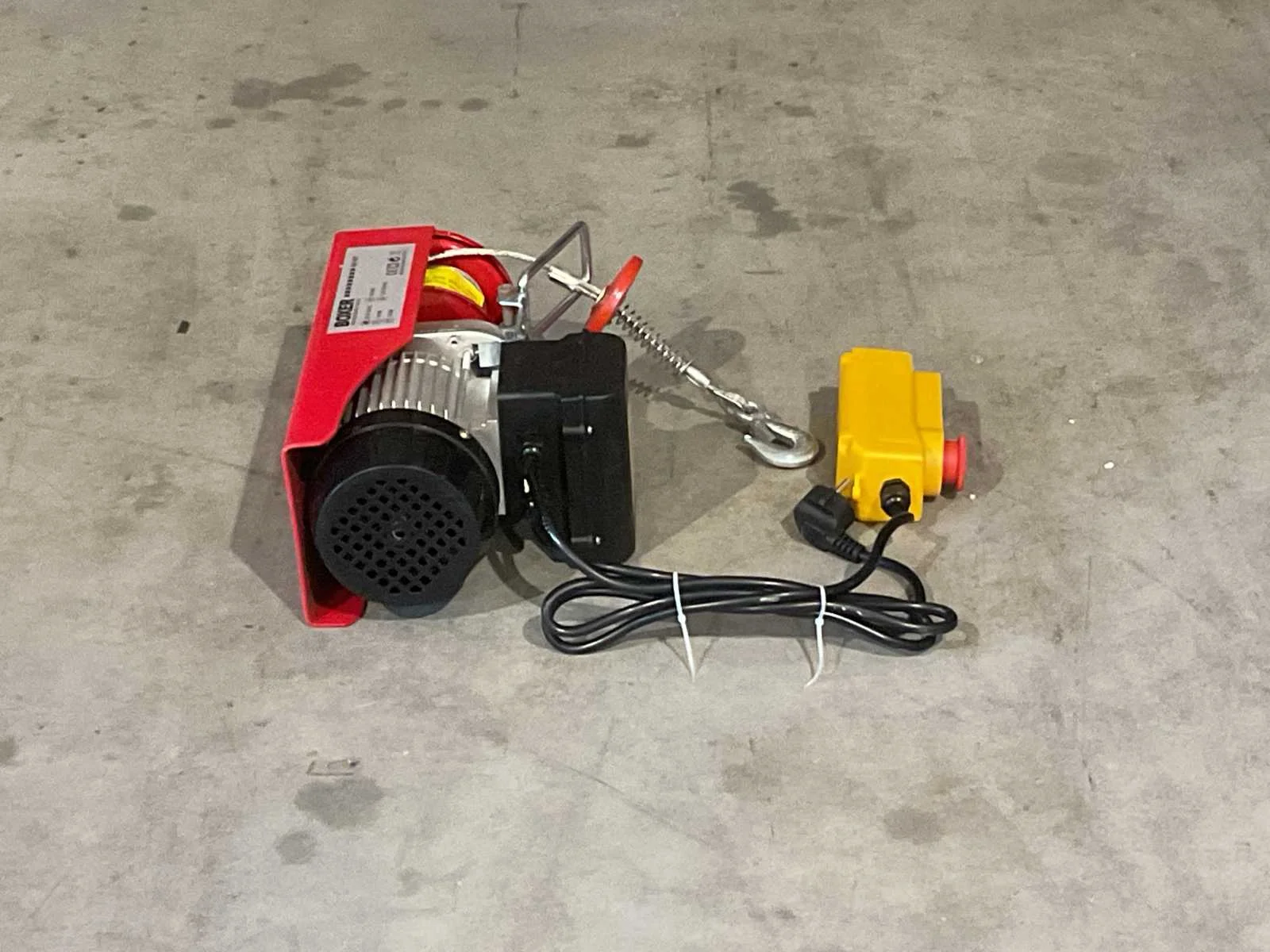 Voorzien van katrol; Motorvermogen: 1500 W; Maximale Laadcapaciteit (enkel / dubbel-kabel): ca. 125kg / 250kg; Maximale Hefhoogte (125kg / 250kg): 12m / 6m; Gem. hijssnelheid: 10 m/min;Aansluiting: 230V; 1 x elektrische lier; 1 x katrol met haak; 1 x montagebeugels; 1 x Bekabelde afstandbediening 1,45; Ongebruikt in doos (Afmeting transport verpakking 355x190x235 mm lxbxh, gewicht 11.36 kg) Merk: Boxer Type: BX-561 250kg Bouwjaar: 2025 Capaciteit.: 1000kg Hijshoogte: 12m Afstandsbediening: true Aansluiting: 220V Totale afmeting L: 355mm Totale afmeting Breedte: 190mm Totale afmeting Hoogte: 235mm Eigen gewicht: 11.36kg