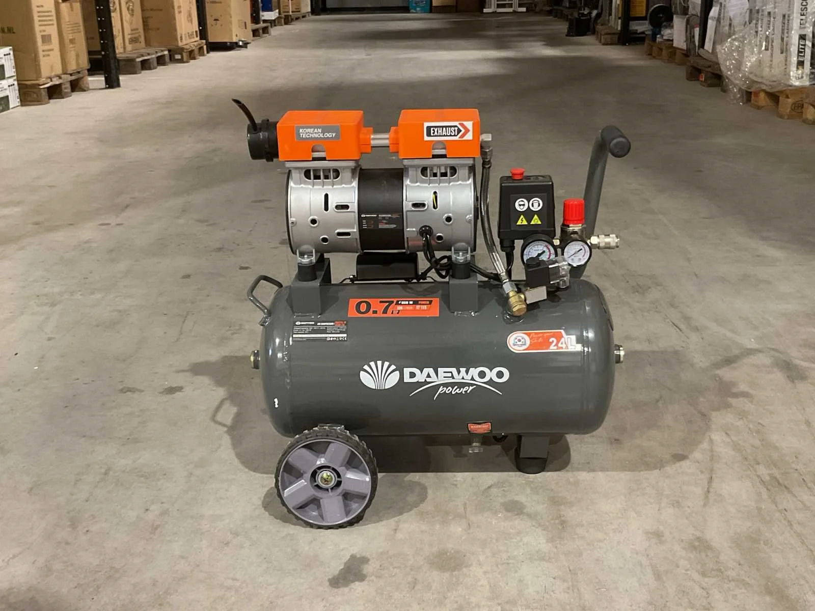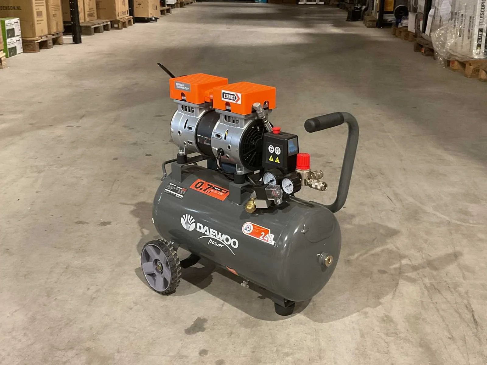 Voorzien van 220 V 50 Hz aansluiting; plastic luchtfilter; 24liter tank capaciteit; luchtdruk 8 bar- 115 psi; 1440 rpm; lucht flow 106 L/min; olievrij systeem; ongebruikt in doos Merk: Daewoo Type: DAAX24L-OF Bouwjaar: 2025 Mobiel: true Capaciteit.: 8bar Luchtstroom: 106l/min Vermogen: 550kW Buffertank inhoud: 240l Aansluiting: 220V Eigen gewicht: 22.5kg Totale afmeting L: 590mm Totale afmeting Breedte: 250mm Totale afmeting Hoogte: 610mm