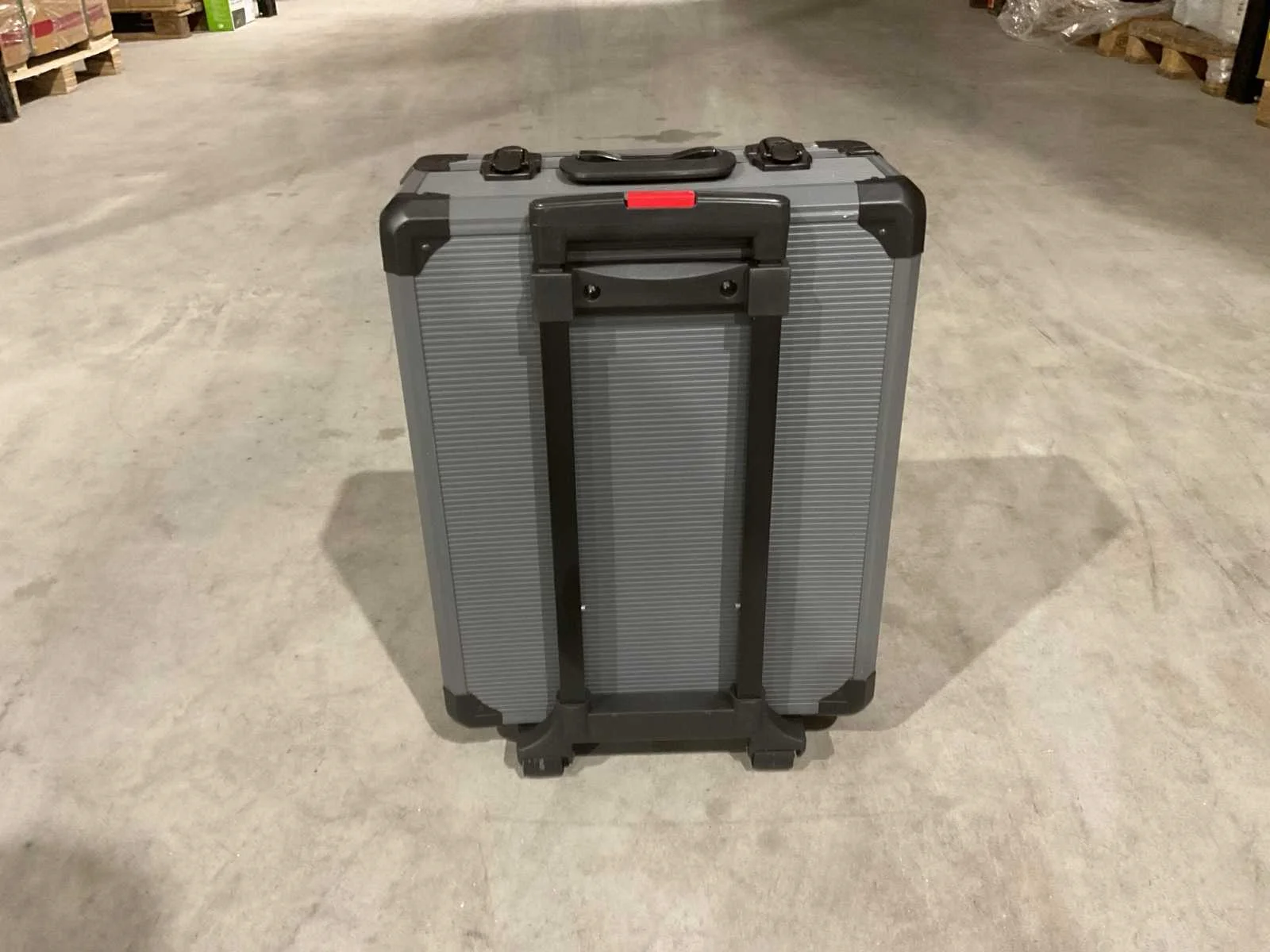 Voorzien van Schroevendraaierset; Zaag; Waterpas; Hamer; Bitset; Inbussleutels; Spanningsmeter; Handgereedschap; Spijkers; pluggen; Aluminium Koffer; Telescoop handgreep; wielen; ongebruikt in doos Merk: SW Tool Type: 399PCS Aluminium: true Metaal: true Met inhoud: true Afmeting l: 38.5mm Afmeting b: 20.5mm Afmeting h: 52mm Eigen gewicht: 13kg