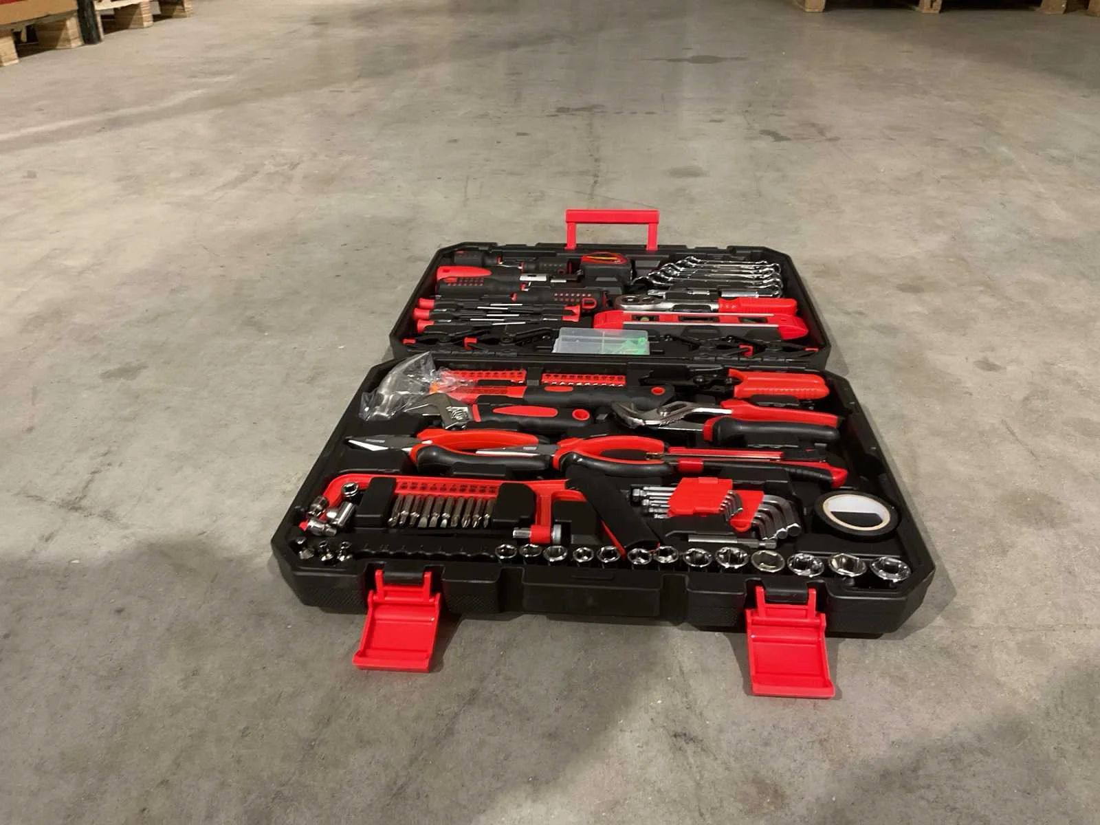 Voorzien van 4 stuks schroevendraaiers SL6*38, SL6*100; PH2*38, PH2*100; 1 stuk bit driver handvat; 1 stuk meetlint 3m; 5 stuks precisieschroevendraaiers; 4 stuks plastic dips; 60 stuks assortiment bevestigingsmiddelen in een doos; 1 stuk Niveau; 1 stuk 3/8dr ratelhandvat; 1 stuk 3/8dr verlengstuk; 1 stuk 3/8dr bougiedop; 6 ringsteeksleutels 8-10-12-13-14-15 cm; 1 stuk 3/8&1/4 adapter; 12 stuks 1/4dr doppen 4-4.5-5-5.5-6-7-8-9-10-11-12-13MM; 10 stuks 3/8dr doppen 10-11-12-13-14-15-16-17-18-19MM; 1 stuk bitverlengstuk; 1 stuk isolatietape; 1 stuk ijzerzaag; 9 stuks inbussleutels 1.5-2-2.5-3-4-5-6-8-10mm; 10 stuks bits 50 mm; 20 stuks bits 25mm; 1 stuk mes; 1 stuk 6'lnesnun tang; 1 stuk 6' langbektang; 1 stuks 6' verstelbare sleutel;1 stuk 8''waterpomptang; 1 stuk 6'' krimptang; 1 stuks klauwhamer; Ongebruikt in doos (Transport afmeting 450 x 90 x 360, Gewicht 5.58 KG) Merk: Metallo Met koffer: true Delig: 156 Type: META-156W Bouwjaar: 2025