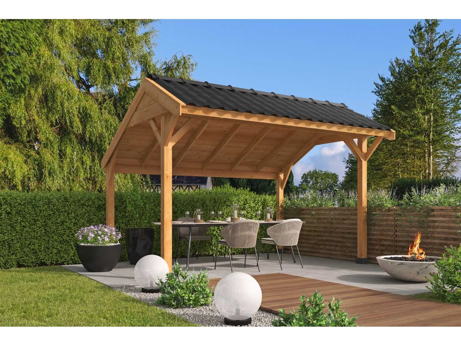 Bouwpakket; zonder dakbedekking en waterafvoer; Product type: Kapschuur Economy Lengte: 400cm Breedte: 300cm Hoogte: 275cm Materiaal: Red class