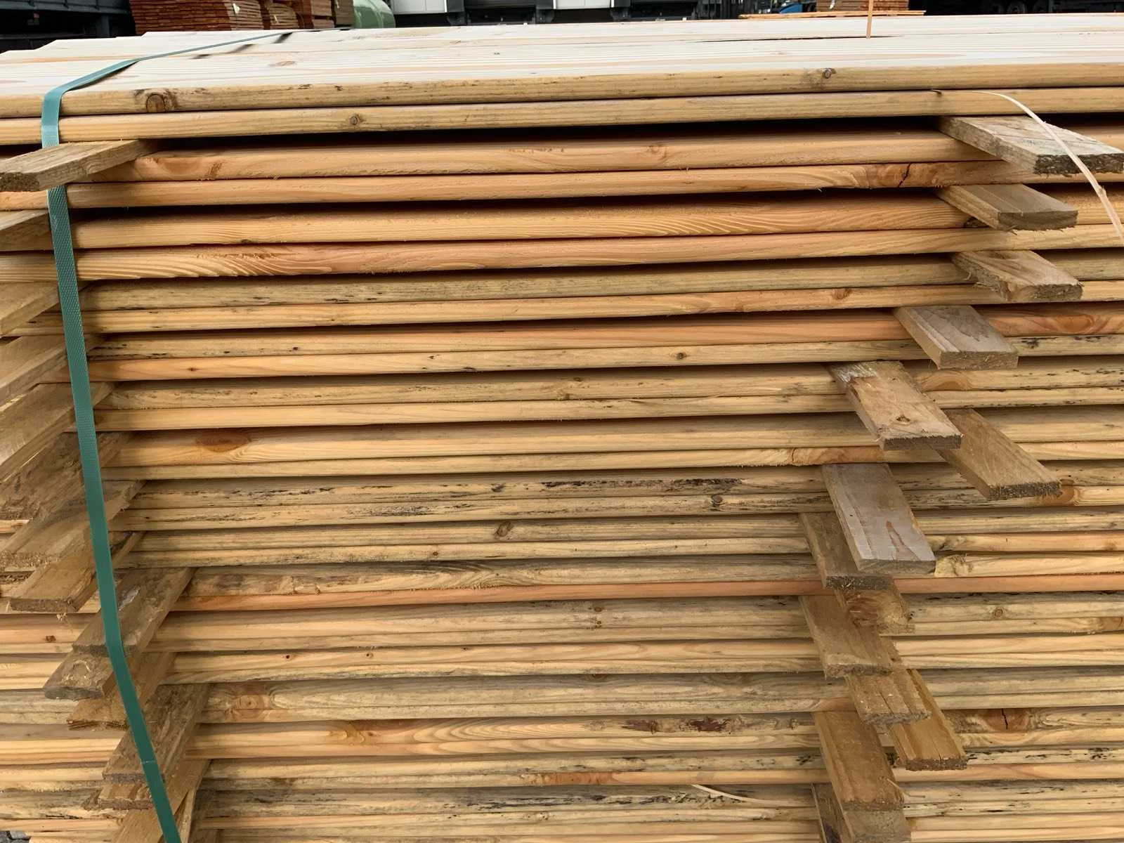 Planken kunnen schade of schimmel bevatten; Merk: Lariks