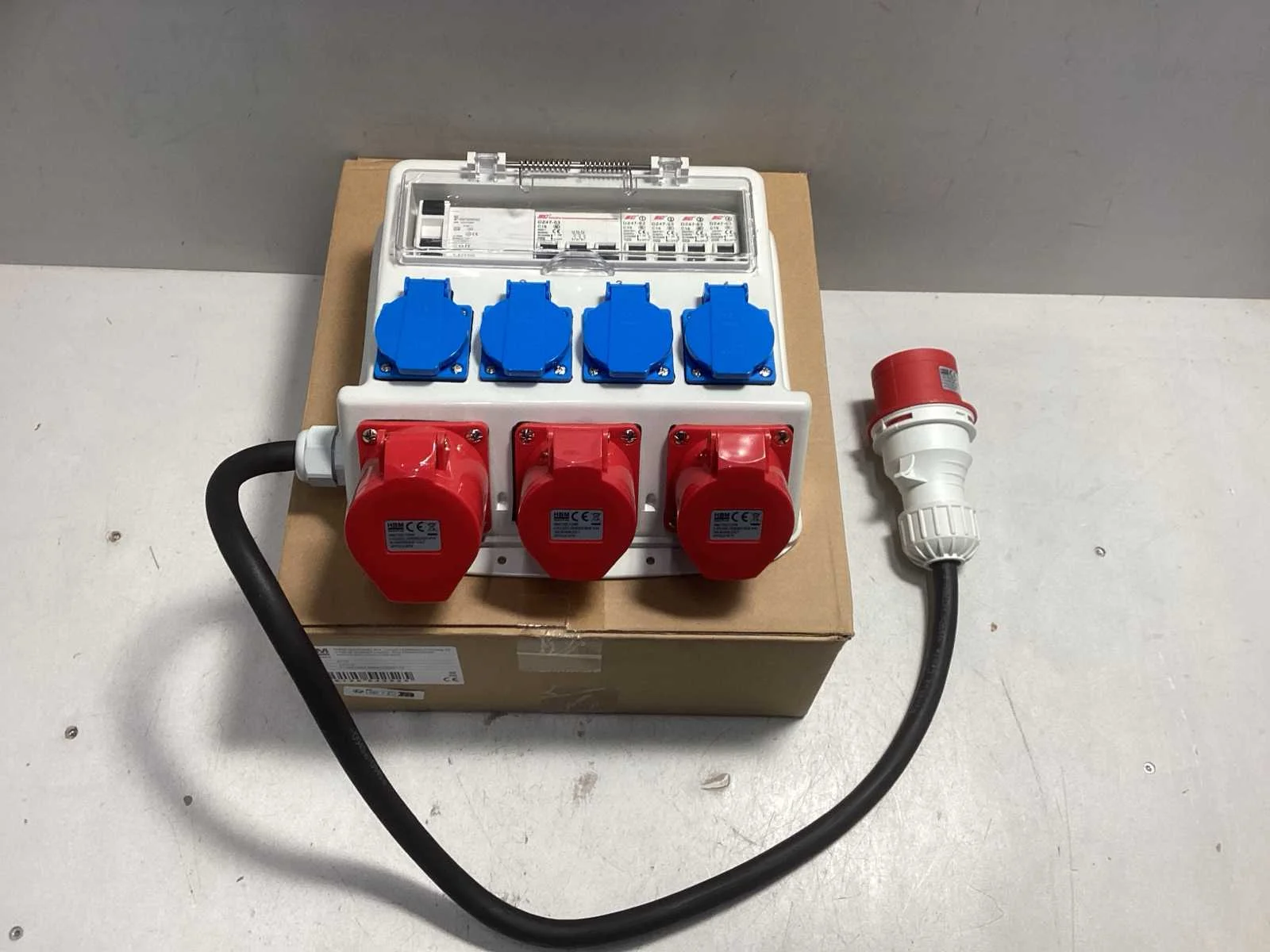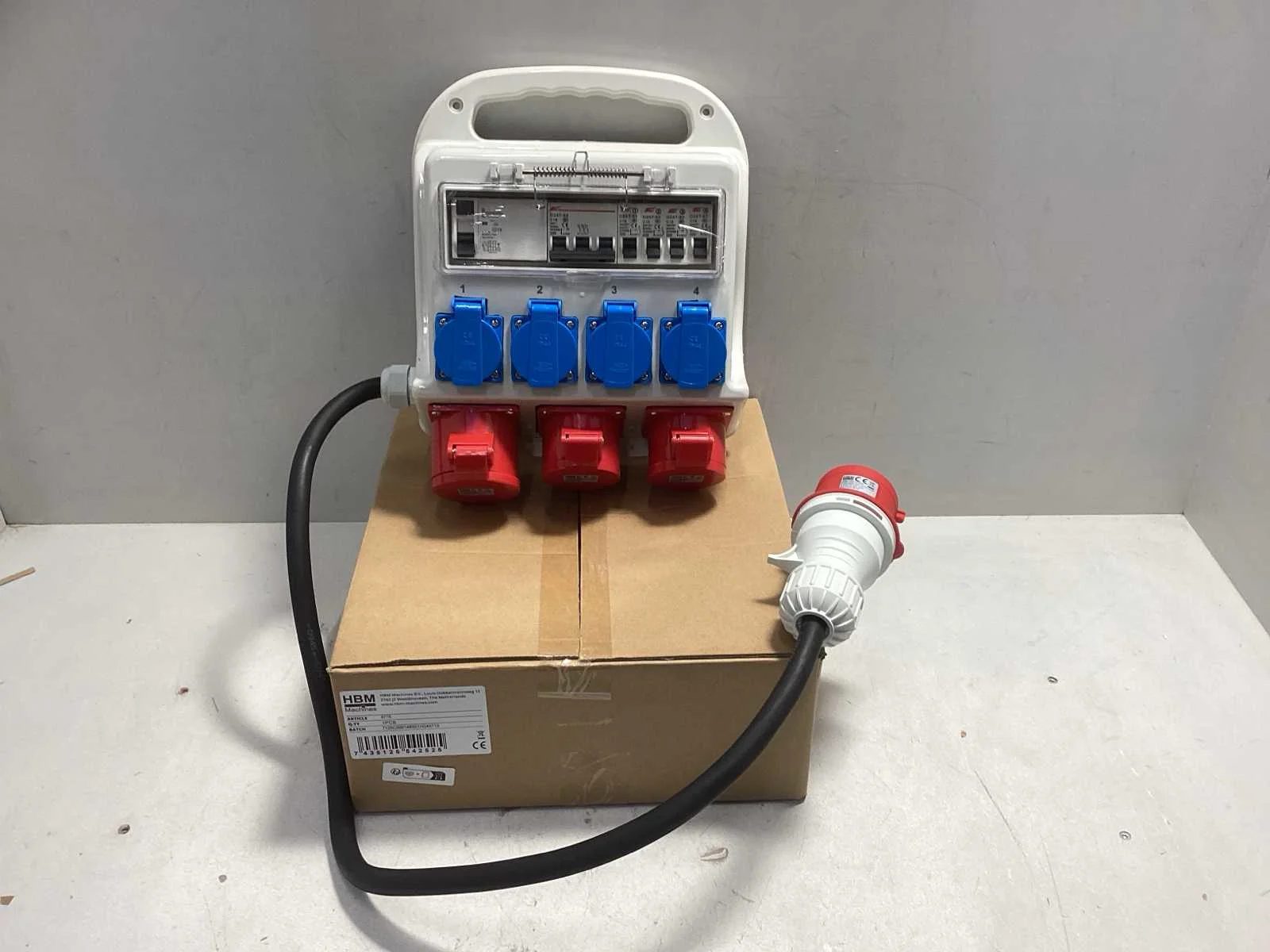 Detail: 16 Amp, 3x 400 volt + 4x 230 volt, IP44, met stekkerdoos, CE volgens: IEC60309-2, Stroomblok/stroomverdeler - 400/230V Within 14 days Merk: HBM