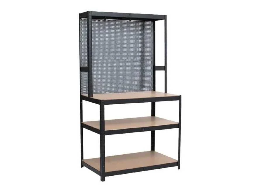 - Werkbank met gereedschapswand, 3 planken en 1 tafelblad - 18 mm dik houten werkblad - Gepoedercoat staal - Ook vrijstaand te gebruiken - Geperforeerde achterwand (incl. 10 haken) - Maximale belasting van de twee onderste planken en het tafelblad: elk 175 kg - Maximale belasting op bovenste plank: 50 kg. - Maat: H180 X B90 X D60CM Within 7 days