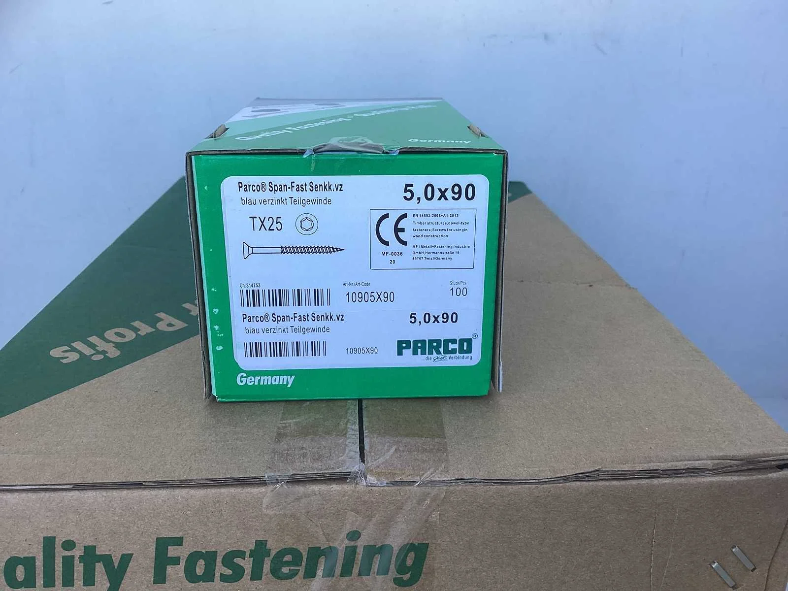 12x parco/kögel tx 25 houtschroeven 1200 stuks 5.0x90mm verzinkt