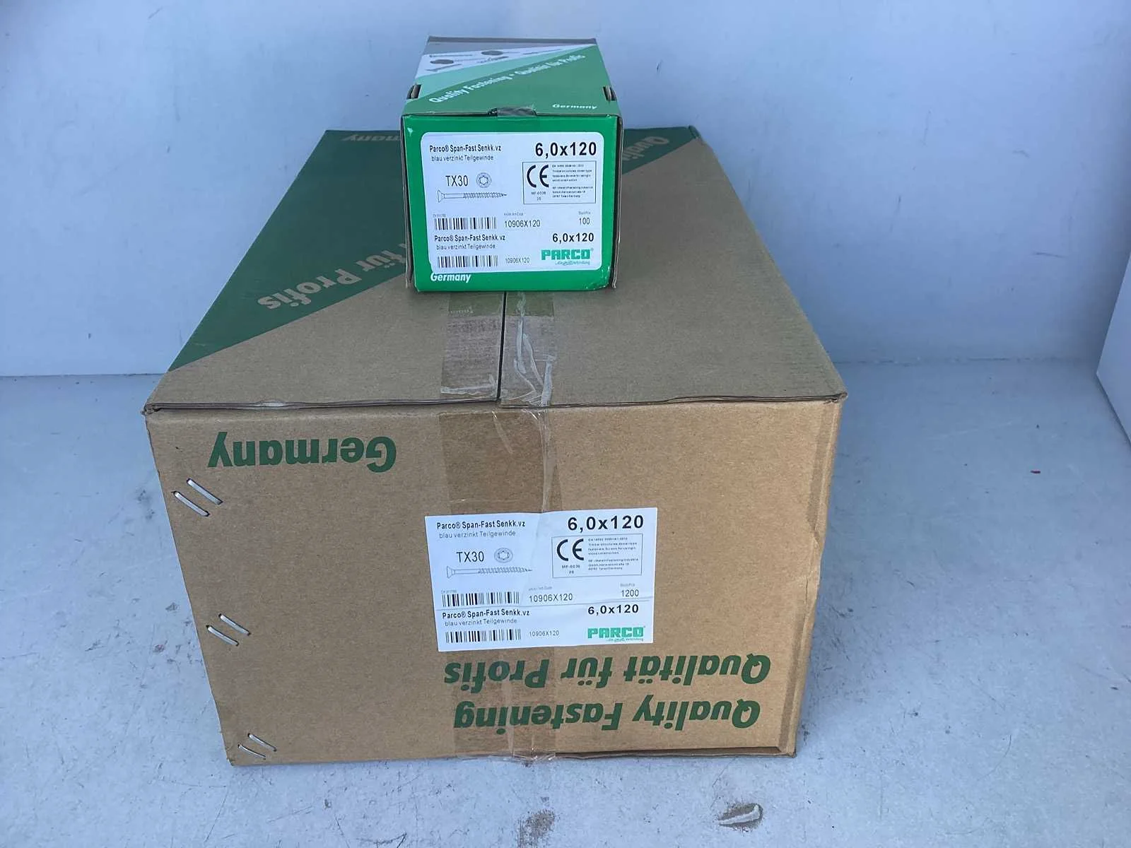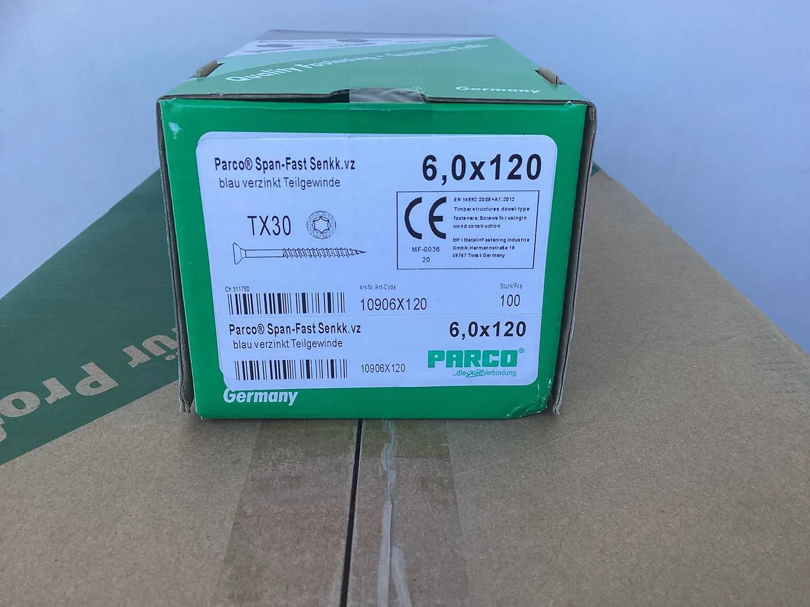 12x parco® spaanplaatschroeven 6,0 x 120mm span-fast blauw verzinkt deeldraad - tx30 (1200 stuks)