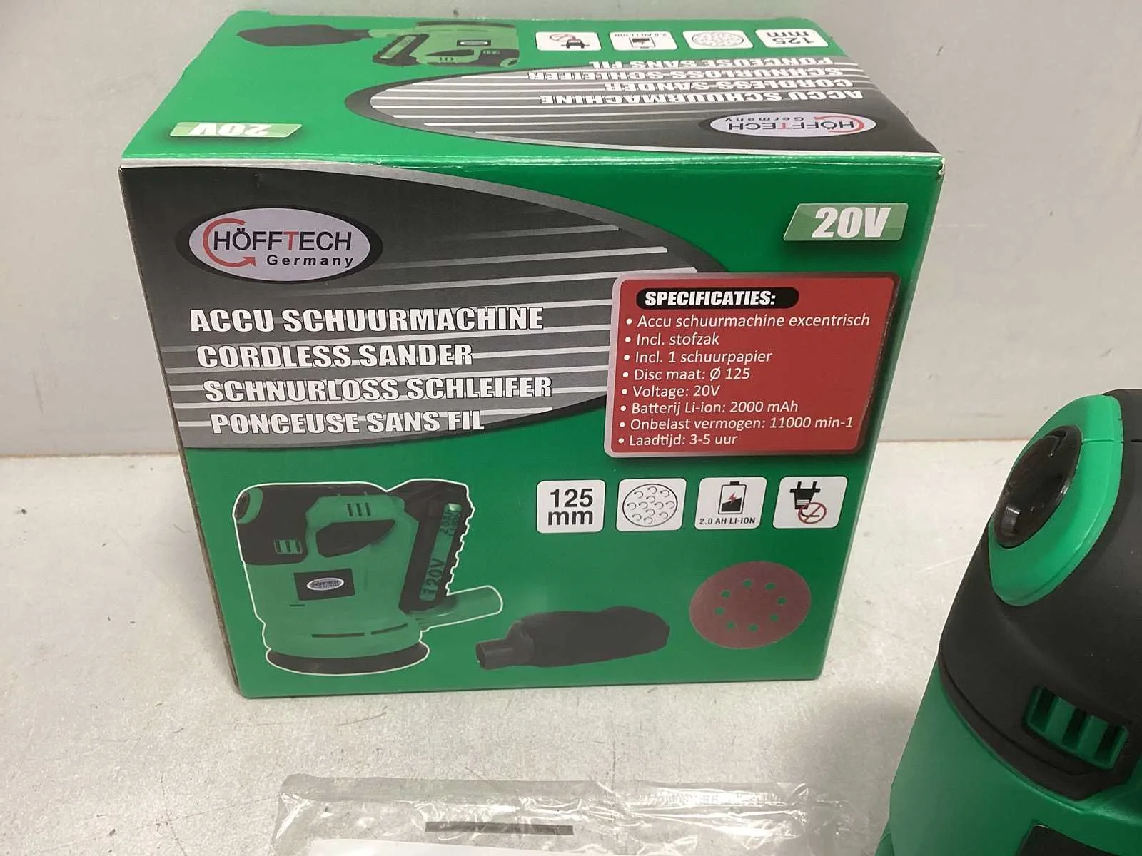 Accu schuurmachine excentrisch 125mm 20v 2000mah