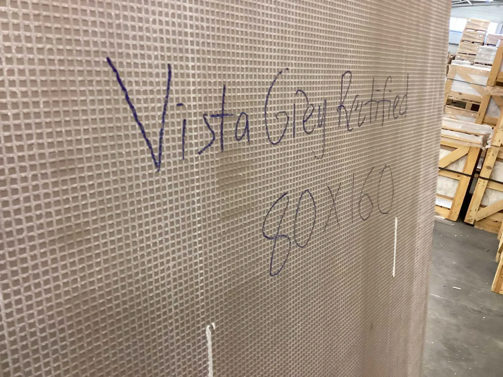 2 pallets Bezorgtermijn 14 dagen Merk: Kutahya Kleur: Vista Grey Afwerking: mat Lengte: 800mm Breedte: 1600mm Dikte: 9mm Materiaal: Keramiek Type: Vloertegel Aantal m² per verpakking: 2.56m² Aantal pakken: 40 Totaal oppervlakte: 102,4m² Totaal gewicht: 2048kg