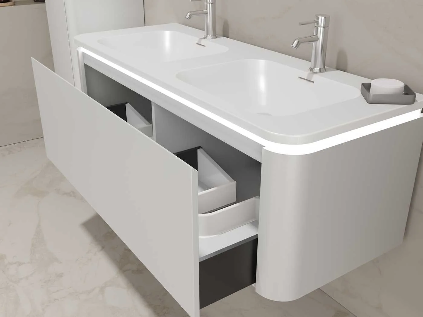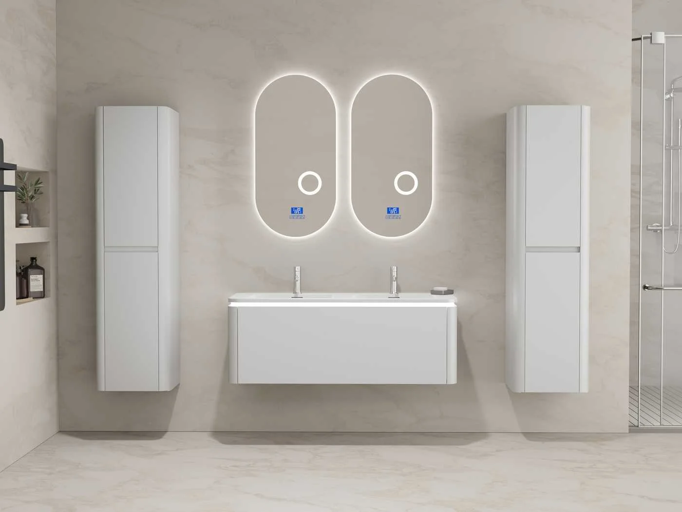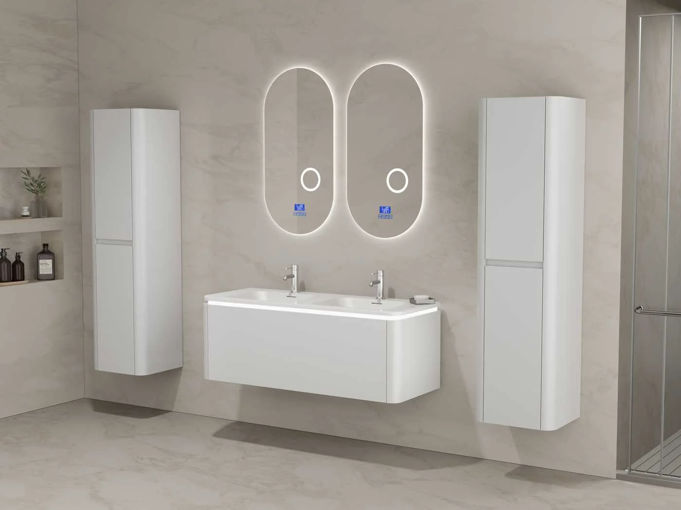 Type: BOSTON1202-WH. Afmetingen Complete set: 1 * Wastafelmeubel - 1200x455x400mm, 1 * Dubbele wasbak - 1205x460x190mm, 2 * Zijkast - 1500x350x350mm, 2* Spiegel- 450x900mm. Voorzien van: LED verlichting in onderkast - 2 kranen inclusief pop-up afvoer – 1 lade met 2 opbergvakken - Softclose lade systeem - LED spiegels met anti-fog systeem - Voorgemonteerde zijkasten en wastafelmeubel. Merk: Vonato Model: Lumi 120 Product type: 2-Persoons 120 cm Hoogte: 40cm Lengte: 46cm Materiaal: Melamine, MDF, metaal Kleur: Wit Kraan: Inclusief 2 kranen Wastafel: Inclusief dubbele wastafel Waskom: 0 Spiegelkast: Nee Spiegel: Ja Spiegel met verlichting: Ja Verlichting: Ja Onderkast: Ja Lades: 1 Bevestigingsmateriaal: Ja