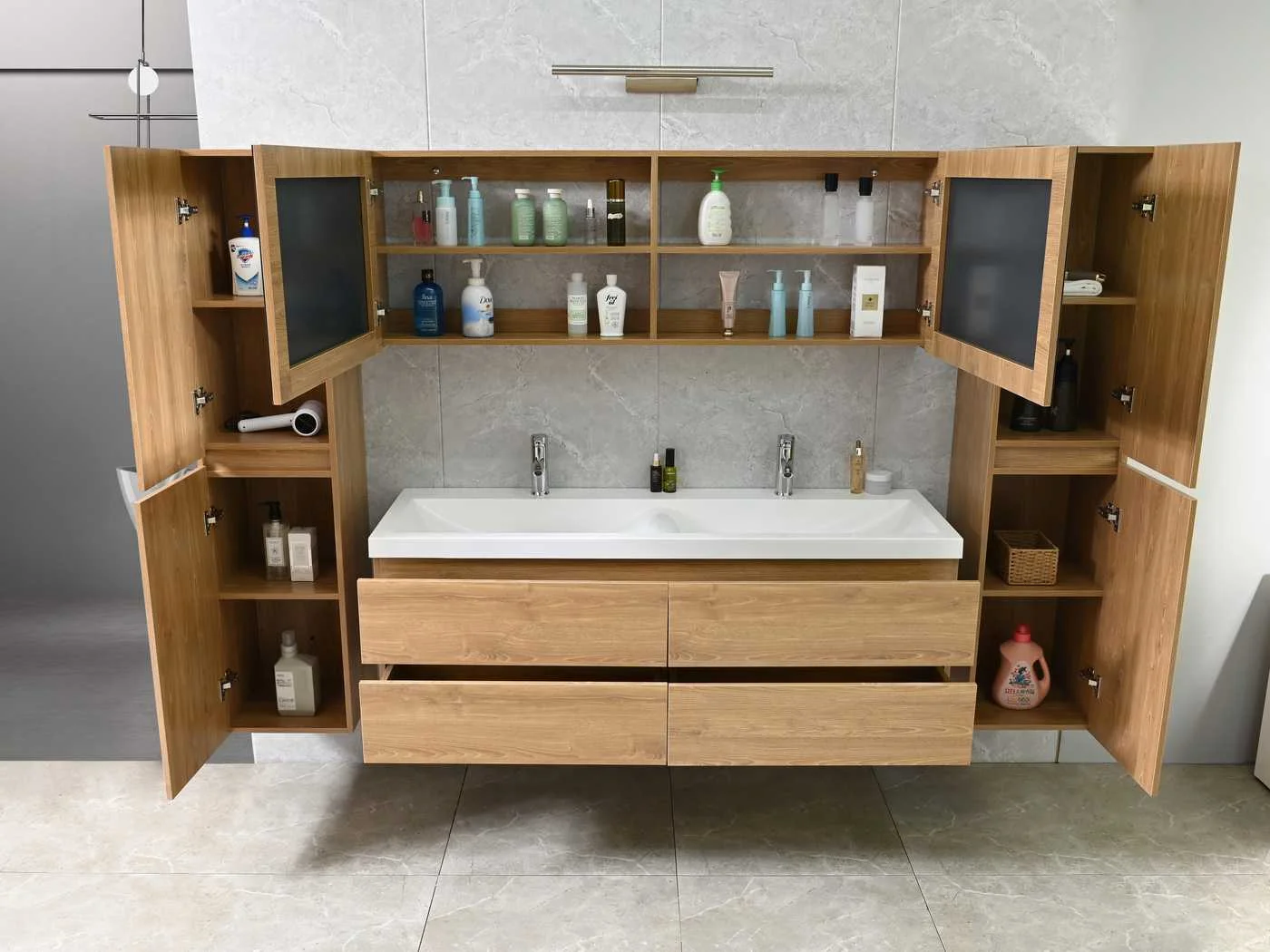 Type: Havik O. Model: 2-persoons badkamermeubel 145 cm licht - hout decor. Kranen: Inclusief. Afmeting: 2-persoons set: 1 * Wastafelmeubel - 1450x480x500mm, 2 * Zijkasten - 1500x350x350mm, 1 * Spiegelkast - 1400x450x180mm. Voorzien van: Kranen inclusief pop-up drain - Softclose lade systeem - Giethars wasbakken - Voorgemonteerde zijkasten en wastafelmeubel. Merk: Vonato Model: Luxury 0 Product type: 2-Persoons 145 cm Hoogte: 50cm Lengte: 48cm Materiaal: 0 Kleur: Hout decor Kraan: Inclusief 2 kranen Wastafel: Inclusief 2 persoons wasbak Waskom: 0 Spiegelkast: Ja Spiegel: 0 Spiegel met verlichting: Ja Verlichting: Ja Onderkast: Ja Lades: 4 Bevestigingsmateriaal: Ja