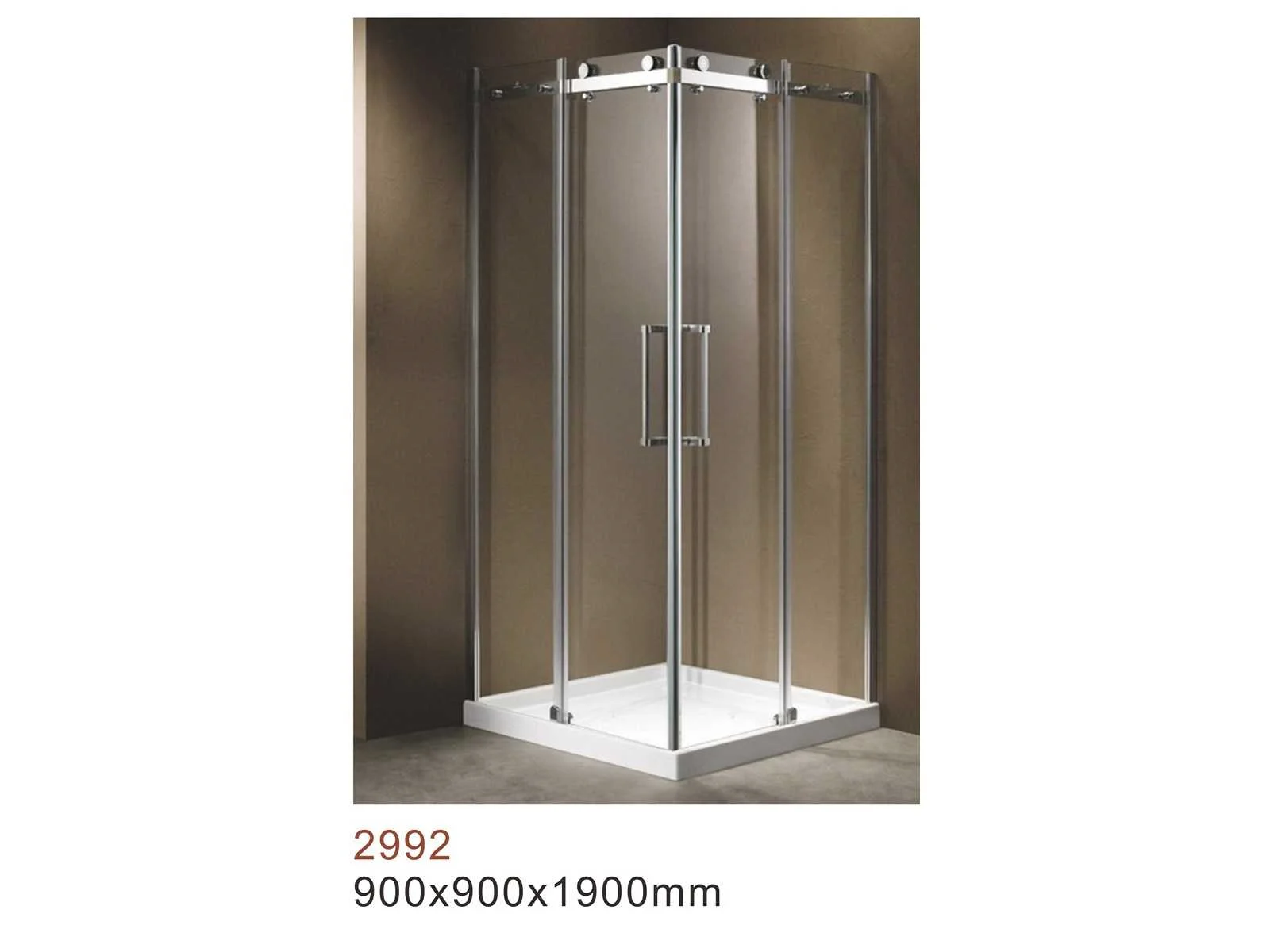 Type: 2992. Model: Douchecabine vierkant. Afmeting: 90x90x200cm. Voorzien van: Douchebak - 8mm veiligheidsglas – Schuifdeuren - deurhendels – zilverkleurige details Merk: Vonato Model: Vistral Product type: Vierkant met schuifdeuren Kleur: Zilverkleurig frame met witte douchebak Lengte: 90cm Hoogte: 200cm Materiaal: RVS frame