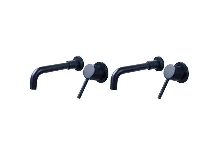 Type: FC26BSET. Bijzonderheden: Set van 2 muurkranen. De inbouwkraan heeft een lengte van ca. 170mm vanaf de muur - Totale lengte (inclusief schroefdraad binnenwerk) ca. 210mm - Voorzien van koperen aansluiting - De giethars cartridge behoudt zijn functionaliteit tot over de 500.000 bewegingen. Merk: Vonato Model: Estella Product type: Meng Inbouw Kleur: Zwart Lengte: 17cm Hoogte: 0cm Materiaal: RVS