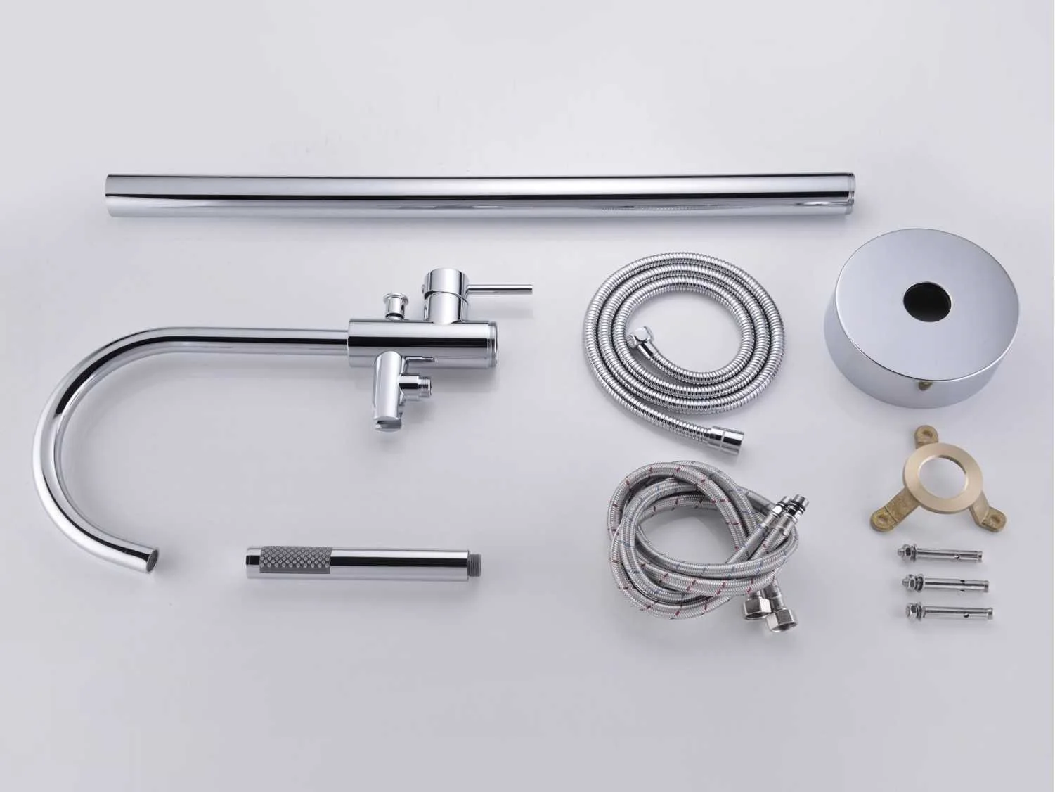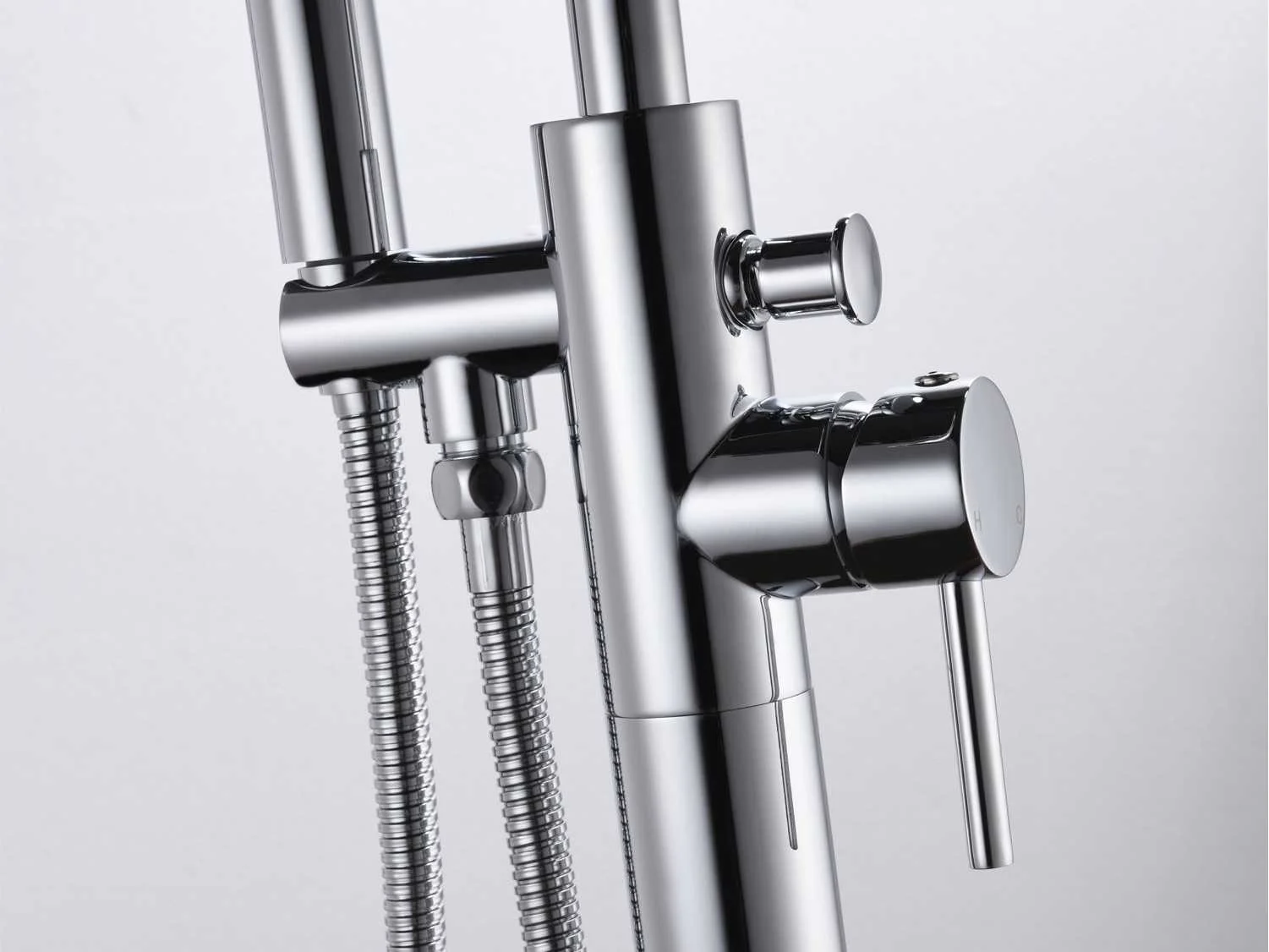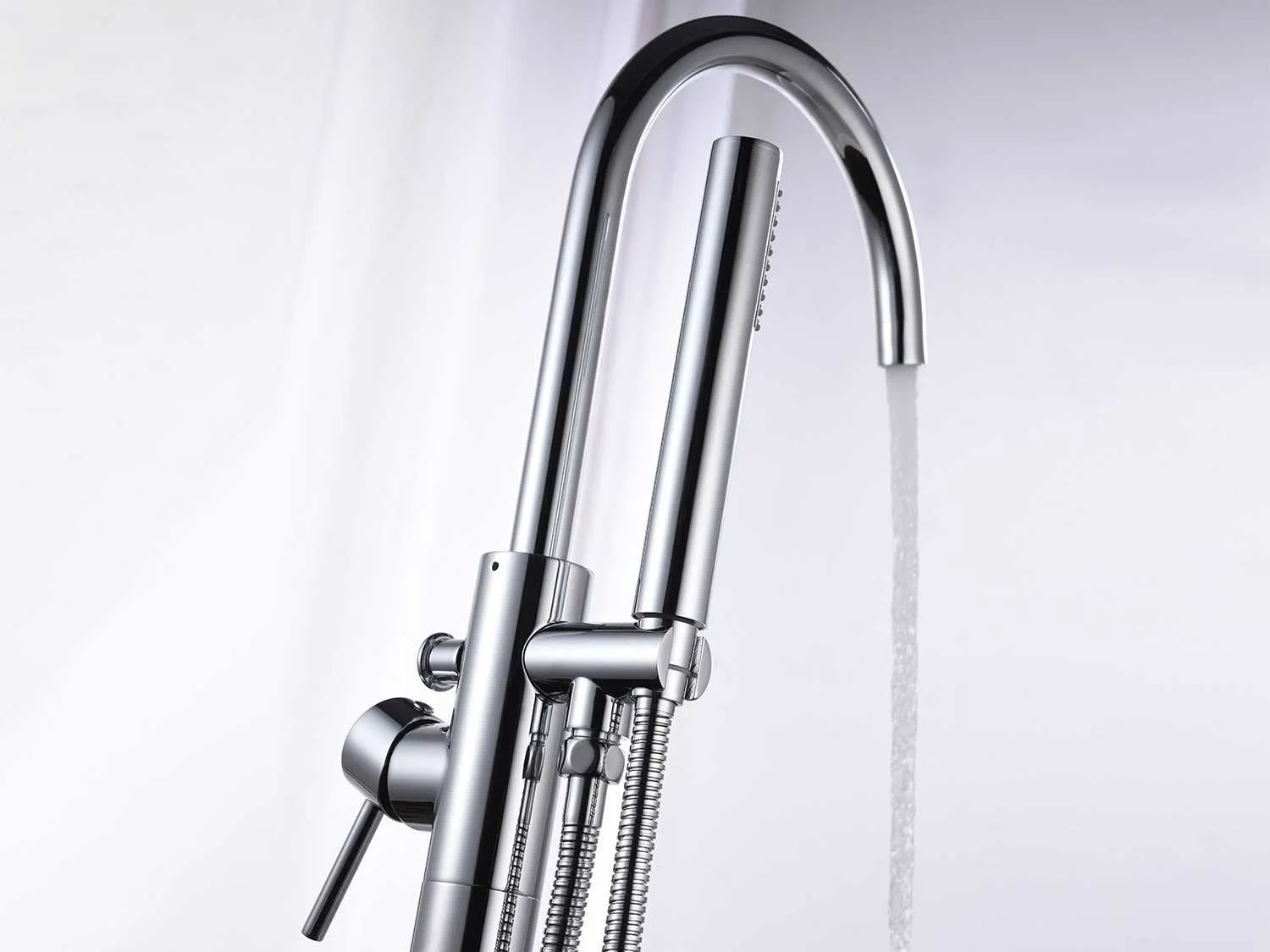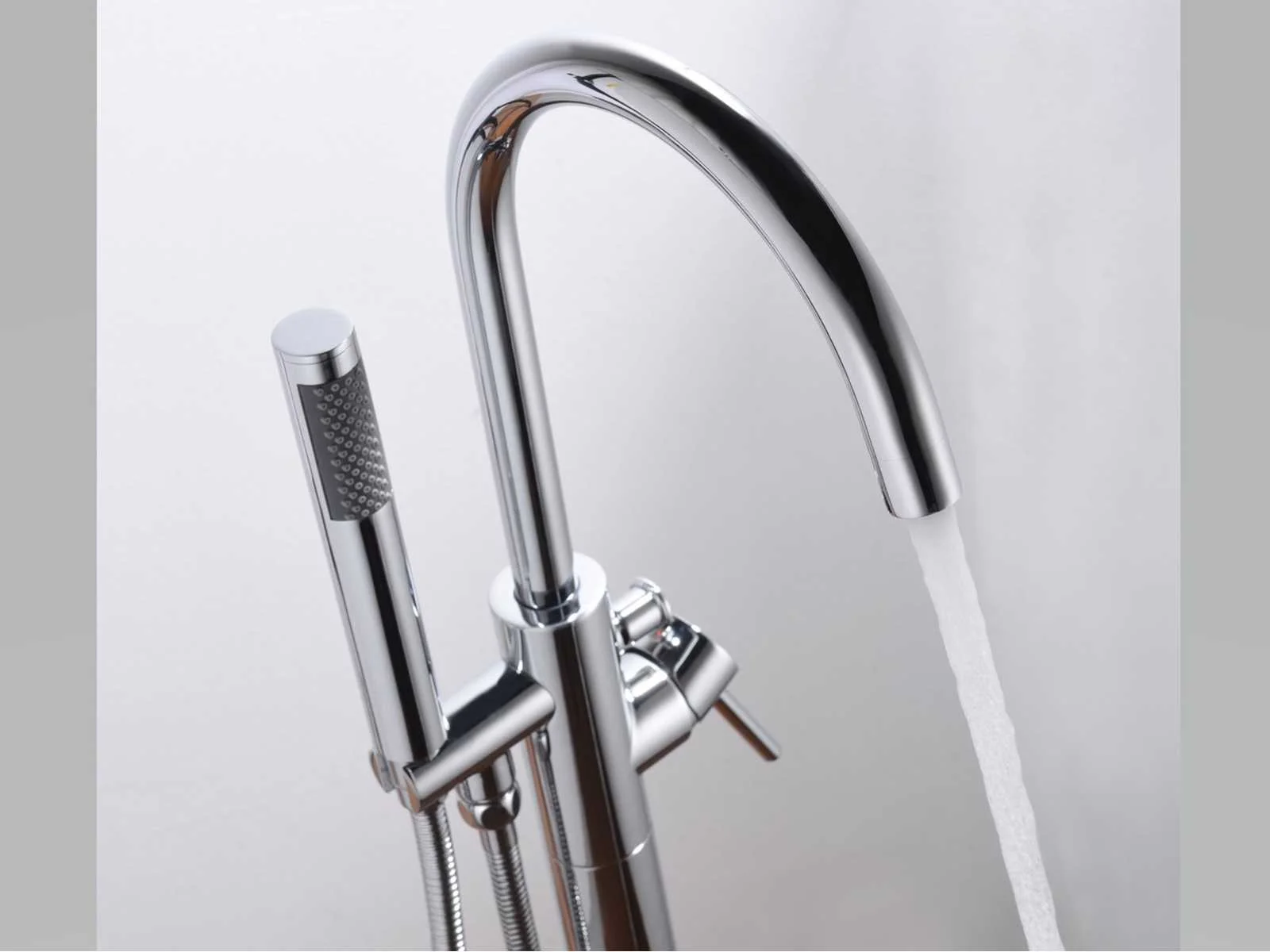 Type: FAUCET CHROME. Voorzien van: Uitneembare handdouche - Buis, handdouche en beugel van messing - 360 graden draaibare uitloop. Merk: Vonato Model: Clovaro Product type: Bad, vrijstaand Vrijstaand Kleur: Zilverkleurig Lengte: 0cm Hoogte: 111cm Materiaal: RVS, messing