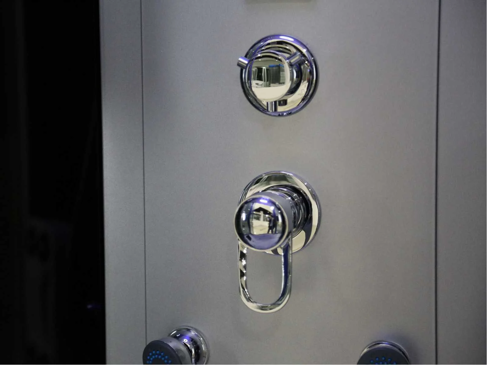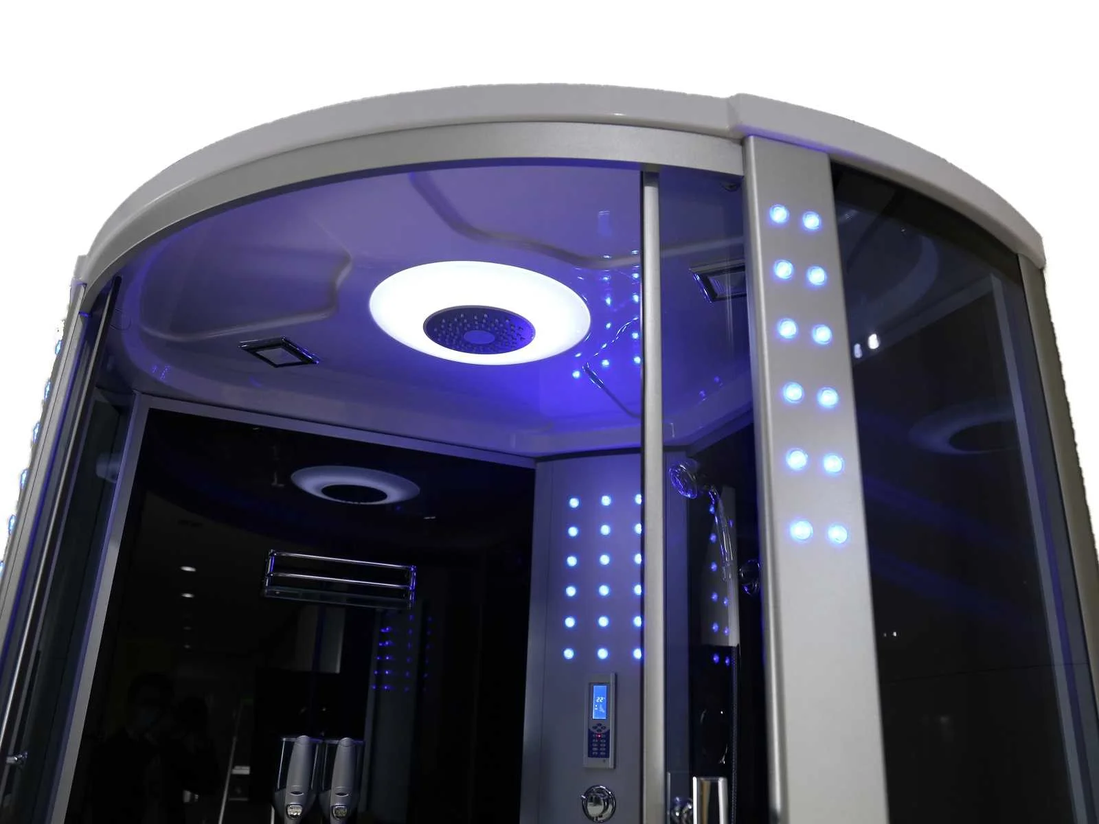 Type: 2586W Waterjets: 6 Waterjets zorgen voor een aangename rugmassage. Voorzien van: Schuifdeuren met waterdichte afsluiting - Hand- en regendouche - Digitaal bedieningspaneel - Sfeerverlichting - FM-radio met speaker en CD-aansluiting - Port om de telefoon op aan te sluiten - Antislip bodem - Ventilator - Cabine staat op verstelpoten die eenvoudig te stellen zijn in hoogte. Merk: Vonato Model: Halvo ThermoLux Product type: met massagejets Kleur: Zwarte cabine, wit bad Lengte: 130cm Hoogte: 220cm Materiaal: Veiligheidsglas