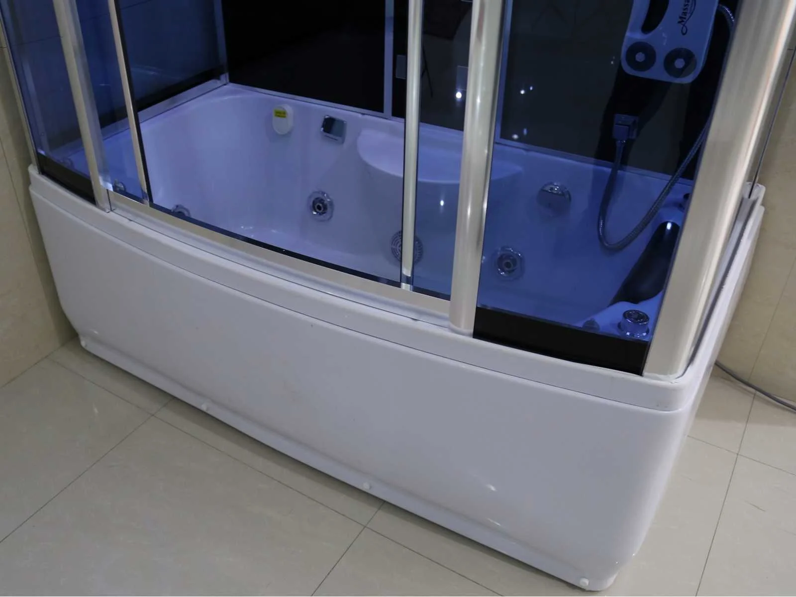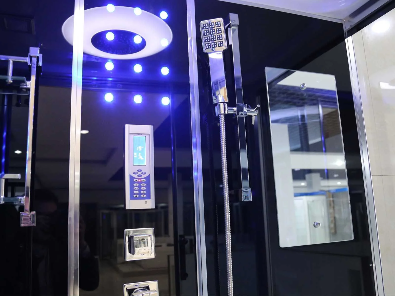 Type: 2611 Voorzien van: Gekleurd veiligheidsglas wat zorgt voor extra veiligheid in de stoomcabine. Dankzij het veiligheidsglas hoef u zich nooit zorgen te maken over scherven op de vloer want het is stootbestendig en sterk. Mocht het toch gebeuren dat het glas barst, dan zal het uiteenvallen in onscherpe stukjes. - Schuifdeuren met een waterdichte afsluiting - Whirlpool bad beschikt over waterstralen voor een aangename massage - Plafondverlichting - Sfeerverlichting - Handdouche - Regendouche - Handdoekenrek met planchet - Zeep en shampoodispenser Merk: Vonato Model: RectaTherm Prime Product type: met massagejets Kleur: Zwarte cabine met wit bad Lengte: 170cm Hoogte: 225cm Materiaal: Veiligheidsglas