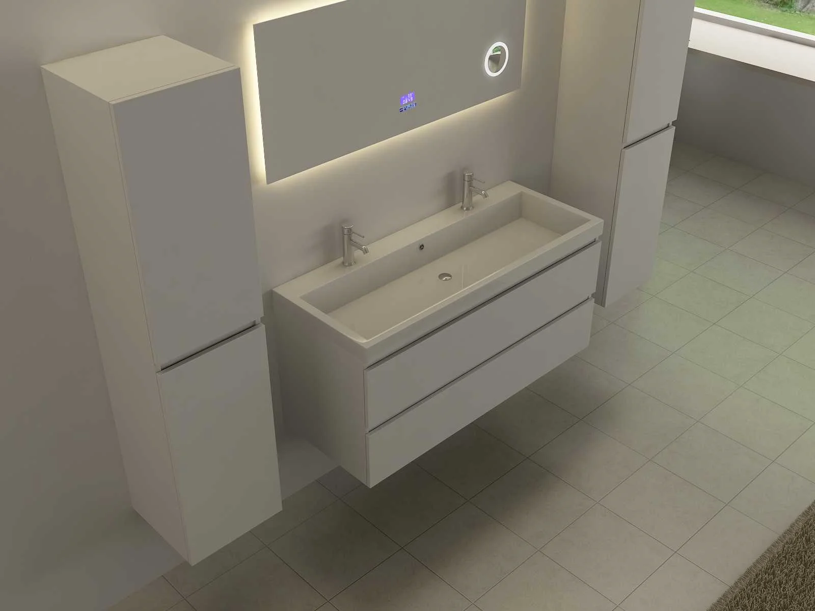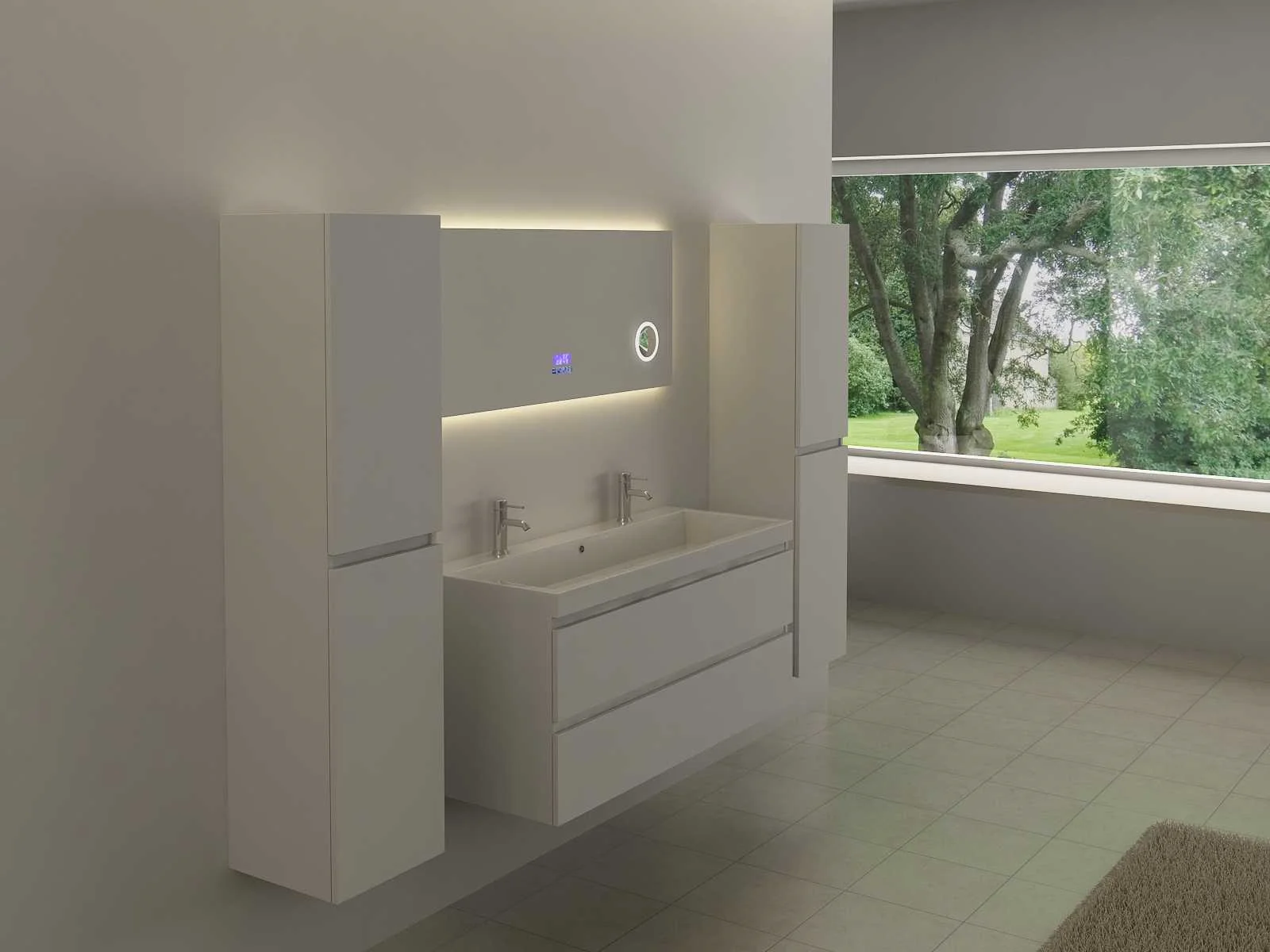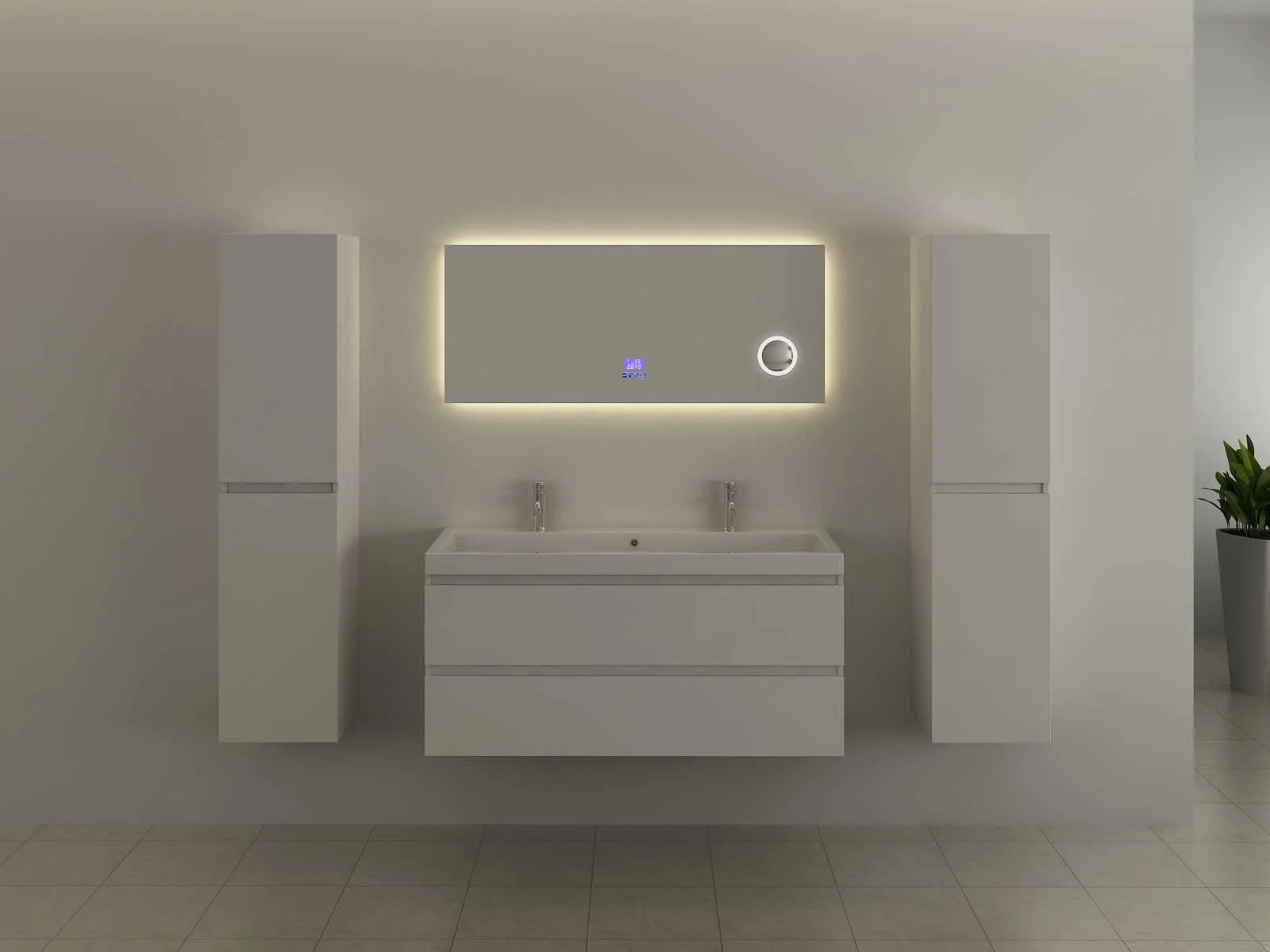 Type: RALM-120 Voorzien van: Touch bediening via digitaal display – LED verlichting in 3 kleuren, dimbaar – Bluetooth & speakers – Digitale klok – Digitale temperatuurmeter – 220 volt aansluiting – Anti-fog technologie door verwarming in de spiegel – Vergrootglas (vergroot 3x) in de spiegel Ø10 cm - Kopervrije spiegel - 1,5mm explosieveilige laag aan de achterkant. Merk: Vonato Model: Forzara Product type: met LED verlichting Kleur: LED verlichting in 3 kleuren; geel, blauw en wit Hoogte: 50cm
