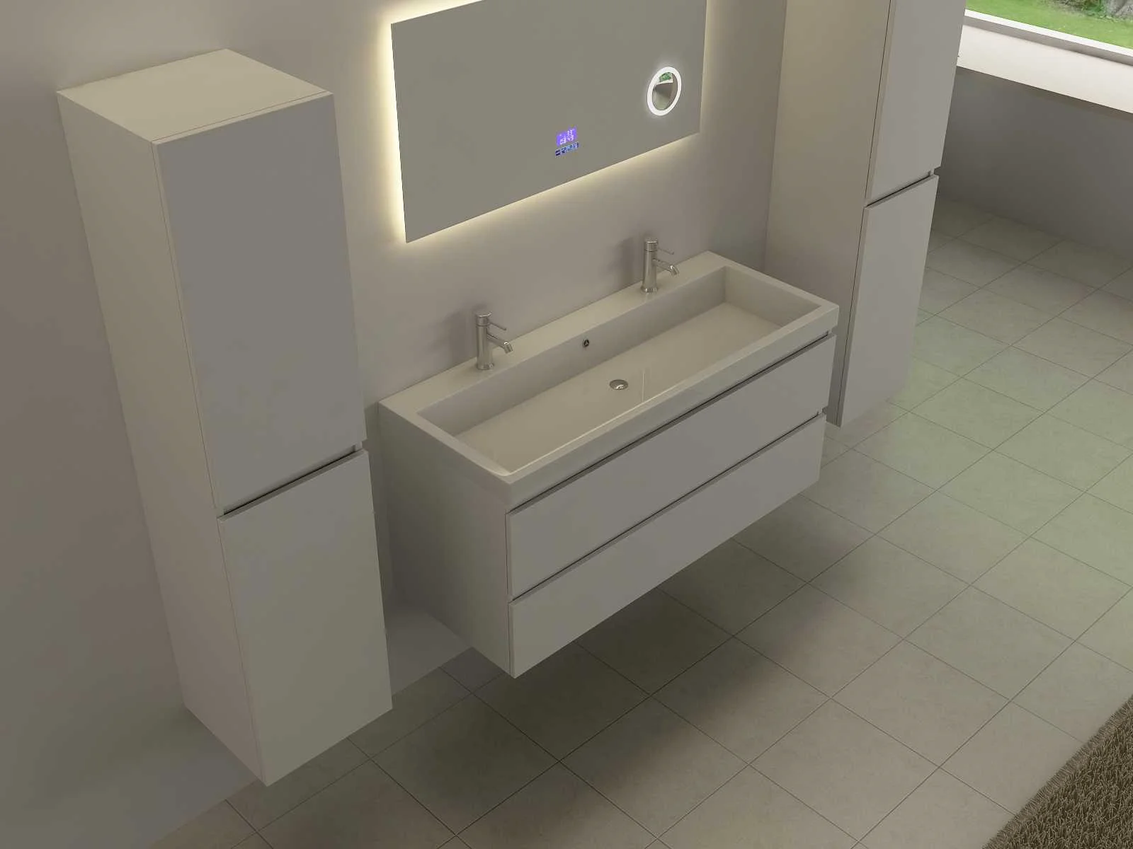 Type: RALM-100 Voorzien van: Touch bediening via digitaal display – LED verlichting in 3 kleuren, dimbaar – Bluetooth & speakers – Digitale klok – Digitale temperatuurmeter – 220 volt aansluiting – Anti-fog technologie door verwarming in de spiegel – Vergrootglas (vergroot 3x) in de spiegel Ø10 cm - Kopervrije spiegel - 1,5mm explosieveilige laag aan de achterkant. Merk: Vonato Model: Calvona Product type: met LED verlichting Kleur: LED verlichting in 3 kleuren; geel, blauw en wit Hoogte: 50cm