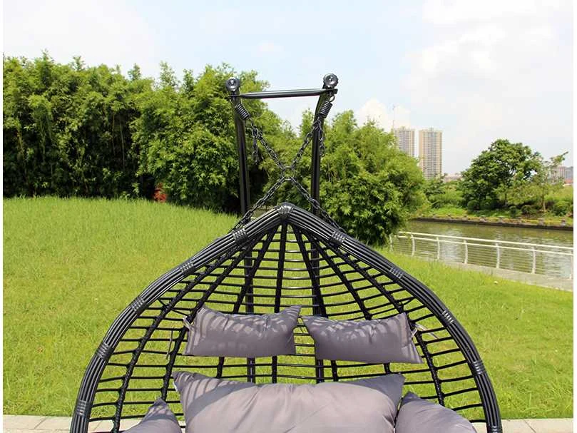 Type: SWING-81-D. Kleur: Zwart frame / grijze kussens. Afmetingen: basket: W135*H125*D78 cm, pole: H197 cm, Base: 105 cm Merk: vonato Model: Hanging Elegance Black Product type: Hangstoel Kleur: zwart Lengte: 0 Hoogte: 125 Diepte: 78 Materiaal: 0
