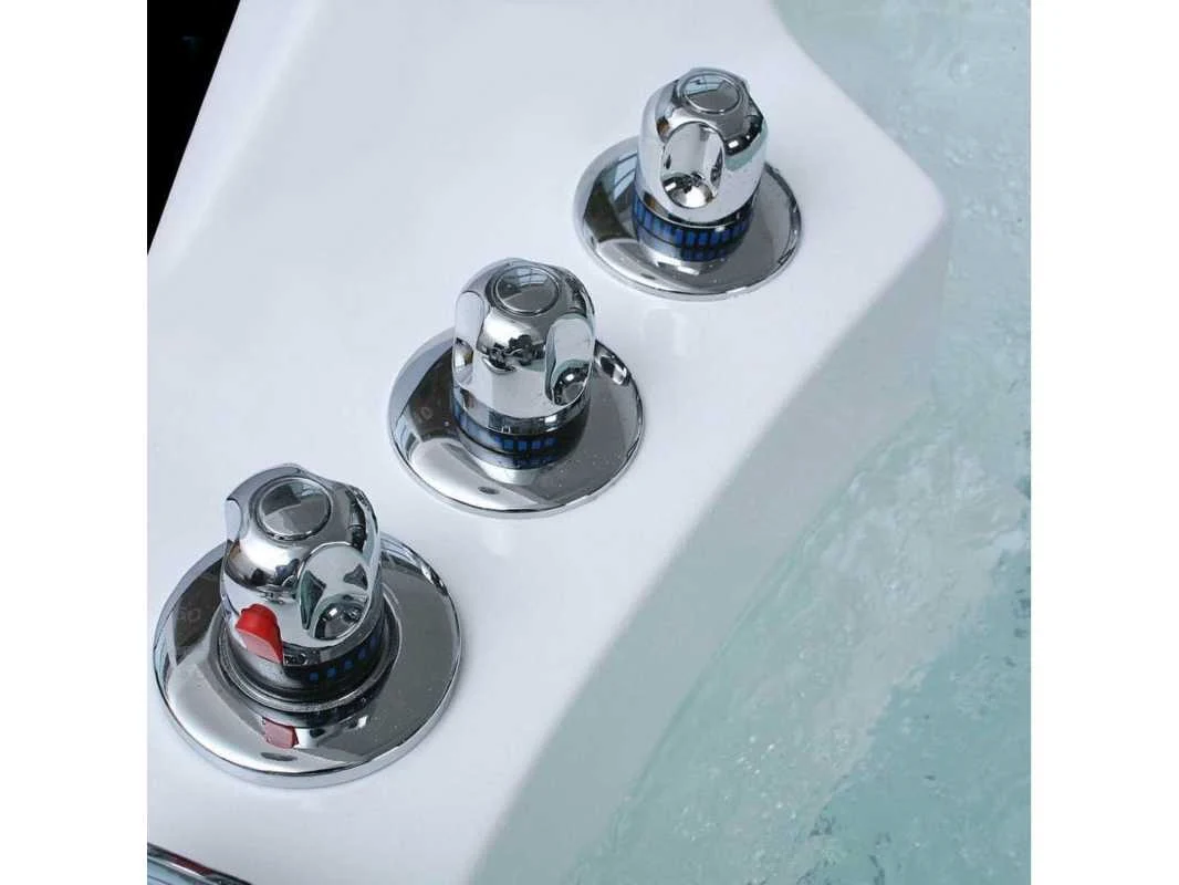 Type: LF3816-150. Waterjets: 12 whirlpool jets - 8 Airbubble jets. Vermogen: 220-240V, 50/60HZ Voorzien van: Heater - 8st verlichting buitenzijde - Ozone desinfectie - FM radio - Control panel - 2 luidsprekers - Waterval - Overloopprotectie - Thermostatische kraan - Handdouche - 2 Hoofdkussens Merk: Vonato Model: Salerno Product type: 2 persoons hoek Kleur: Wit Lengte: 150cm Hoogte: 62cm Materiaal: RVS frame en acryl bad