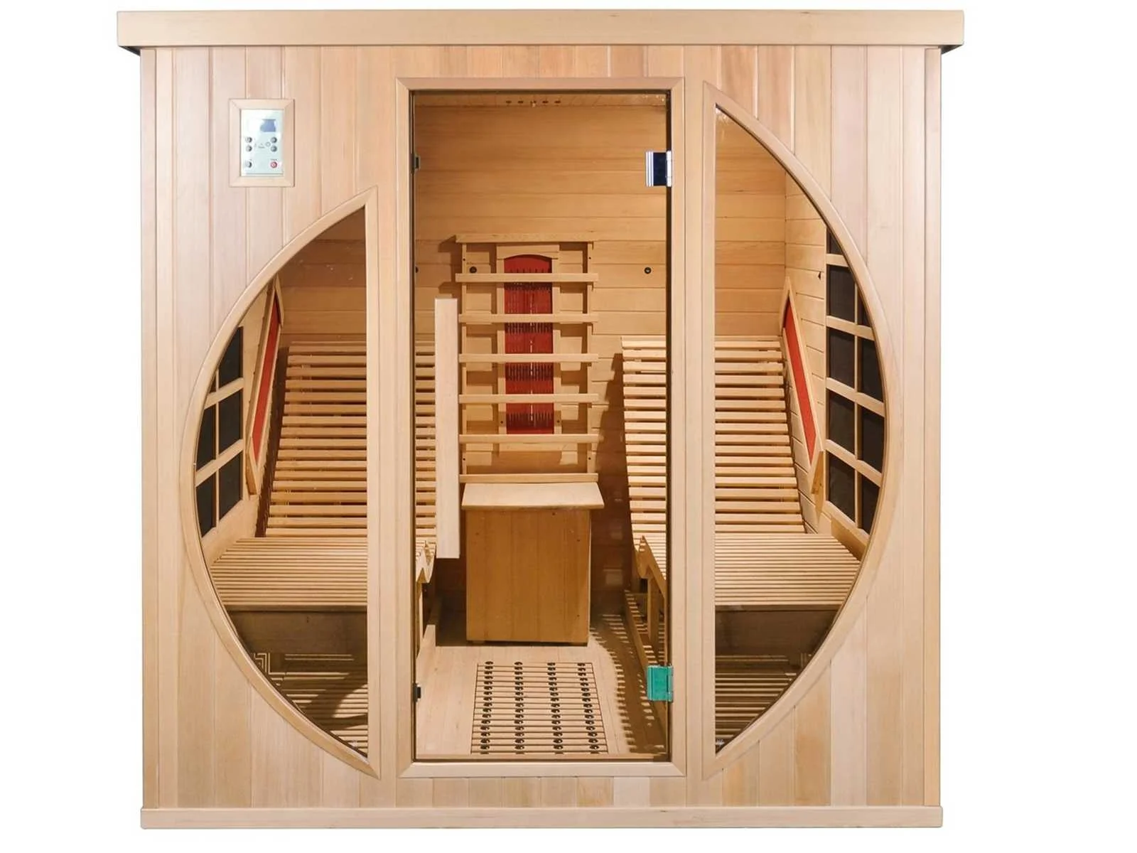 Type: RELAX 2 Model: Infraroodkachel - rechthoekig Afmeting: 1800x1800x1900mm Verwarming: Infraroodverwarming (3400w) verwarmd Giethars platen die evenredig warmte afgeven binnen de sauna Voorzien van: Helder veiligheidsglas (8mm) - Ozone desinfectie - Control Panel met USB aansluiting en Bluetooth - Leeslampje - Sfeerverlichting Merk: Vonato Model: Laverno Product type: Rechthoekig Sauna met kachel Kleur: Hout Lengte: 180cm Hoogte: 190cm Materiaal: Hout met helder veiligheidsglas