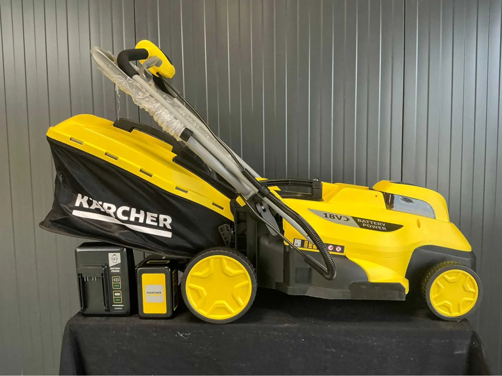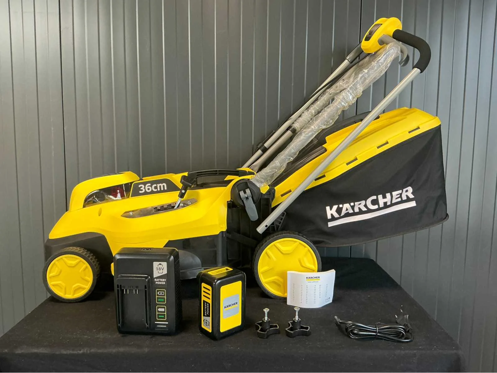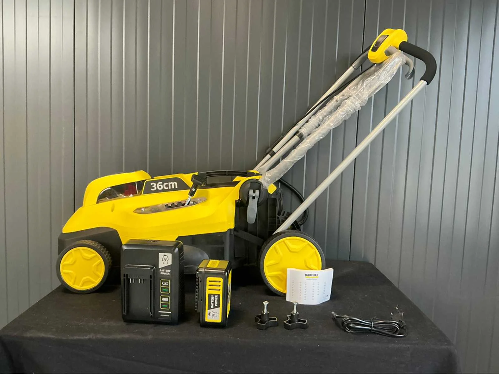 Betreft een showmodel Inclusief batterij Merk: Kärcher Type: LMO 18-36 battery pack