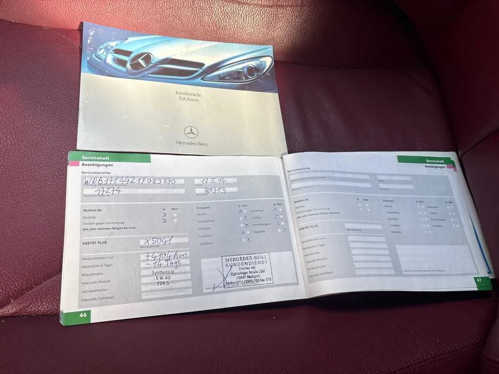 Kenteken: JR-367-V Merk: Mercedes-Benz Model: SLK-klasse Type: 200 K. Afgelezen kilometerstand: 190839km Cilinderinhoud: 1796cc Vermogen (kW): 120kW Brandstof: benzine Chassisnummer: WDB1714421F083270 NAP status: Geen oordeel Datum eerste toelating: 2005-06-15 Datum eerste toelating (NL): 2016-05-27 APK vervaldatum: 2023-07-06 Vermogen (pk): 163hp Aandrijving: rwd Aantal zitplaatsen: 2 Kleur: grijs Transmissie: Handgeschakeld Stuurwiel: links Emissieklasse: 4 Aantal deuren: 2 Ledig gewicht: 1290kg Aantal cilinders: 4 Carrosserie: cabriolet Onderhoudshistorie: Ja gedeeltelijk Carfax Link: https://was.carfax.eu/v0/api/ccdid/5100016408/svc/201/vinreg/JR367V/checksum/eyJhbGciOiJIUzI1NiIsInR5cCI6IkpXVCJ9.eyJleHAiOjE3NjMyMTY2ODR9.5j0ph3ecgYOBCUbe7-i2UR9kEsABFQ7QcGmaLRAtR38 startinformatie : Start en rijdt