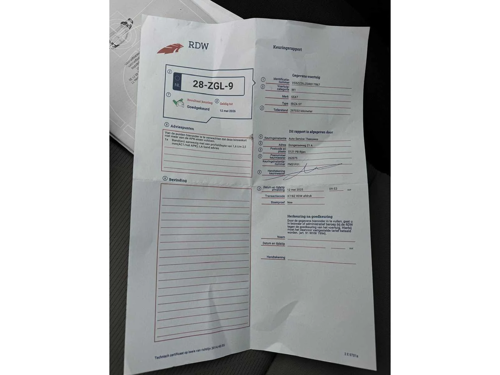 Achterbank in delen neerklapbaar airco 1040 - Airconditioning handbediend alarm klasse 1(startblokkering) Anti Blokkeer Systeem Anti doorSlip Regeling bestuurdersairbag bestuurdersstoel in hoogte verstelbaar boordcomputer Brake Assist System buitenspiegels elektrisch verstel- en verwarmbaar buitentemperatuurmeter centrale vergrendeling met afstandsbediening dakrails elektrische ramen voor Elektronisch Stabiliteits Programma lichtmetalen velgen 15" 1105 - Lichtmetalen velgen 15" (Ibia) passagiersairbag radio-CD/MP3 speler 1160 - Radio/CD/MP3 + aux-in inclusief radiovoorbereiding stuur en versnellingspook (kunst)leder stuur multifunctioneel zij airbag(s) voor Kenteken: 28-ZGL-9 Merk: SEAT Model: Ibiza ST Type: 1.2 TDI Style Eco. Afgelezen kilometerstand: 305187km Cilinderinhoud: 1199cc Vermogen (kW): 55kW Brandstof: Diesel Chassisnummer: VSSZZZ6JZDR017867 Laadvermogen: 0kg NAP status: Logisch Datum eerste toelating: 2012-12-27 Datum eerste toelating (NL): 2012-12-27 APK vervaldatum: 2026-05-12 Vermogen (pk): 75hp Energielabel: A Aandrijving: FWD Aantal zitplaatsen: 5 Maximaal trekgewicht ongeremd: 600kg Maximaal trekgewicht geremd: 1000kg Kleur: grijs Transmissie: Handgeschakeld Stuurwiel: links Emissieklasse: 5 Aantal deuren: 4 Ledig gewicht: 1105kg Bruto BPM (NL): 772€ Rest BPM: 89€ Aantal cilinders: 3 Carrosserie: stationwagen Nationaliteit documenten: Nederland CO2-uitstoot NEDC: 89 Onderhoudshistorie: Ja gedeeltelijk Carfax Link: https://was.carfax.eu/v0/api/ccdid/5100016408/svc/201/vinreg/28ZGL9/checksum/eyJhbGciOiJIUzI1NiIsInR5cCI6IkpXVCJ9.eyJleHAiOjE3NjMxMjMwMTN9.pvaRYpm246oklluU3X5SsWNq-MPABm3etvmwgb6oT8g startinformatie : Start en rijdt Airconditioning: true Navigatie: true