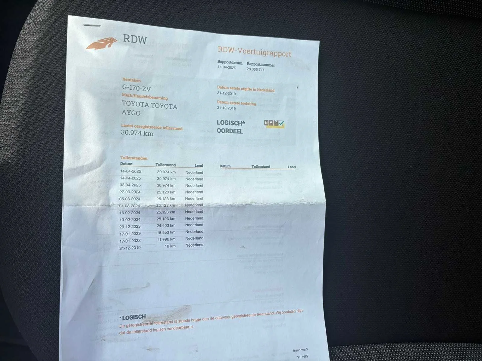 Kenteken: G-170-ZV Merk: Toyota Model: Aygo Type: 1.0 VVT-i x-fun Afgelezen kilometerstand: 30988km Cilinderinhoud: 998cc Vermogen (kW): 53kW Brandstof: Benzine Chassisnummer: JTDKGNEC10N505522 Laadvermogen: 0kg NAP status: Logisch Datum eerste toelating: 2019-12-31 Datum eerste toelating (NL): 2019-12-31 APK vervaldatum: 2025-12-31 Vermogen (pk): 72hp Aantal zitplaatsen: 4 Kleur: wit Transmissie: Handgeschakeld Stuurwiel: links Emissieklasse: 6 Aantal deuren: 4 Ledig gewicht: 815kg Aantal cilinders: 3 Carrosserie: hatchback Onderhoudshistorie: Ja gedeeltelijk Carfax Link: https://was.carfax.eu/v0/api/ccdid/5100016408/svc/201/vinreg/G170ZV/checksum/eyJhbGciOiJIUzI1NiIsInR5cCI6IkpXVCJ9.eyJleHAiOjE3NTgzNTk1NzF9.rvbvGJTBtcnBdwkd3rHmG0PMlbm_YTIBrHB4M-kKitM startinformatie : Start en rijdt