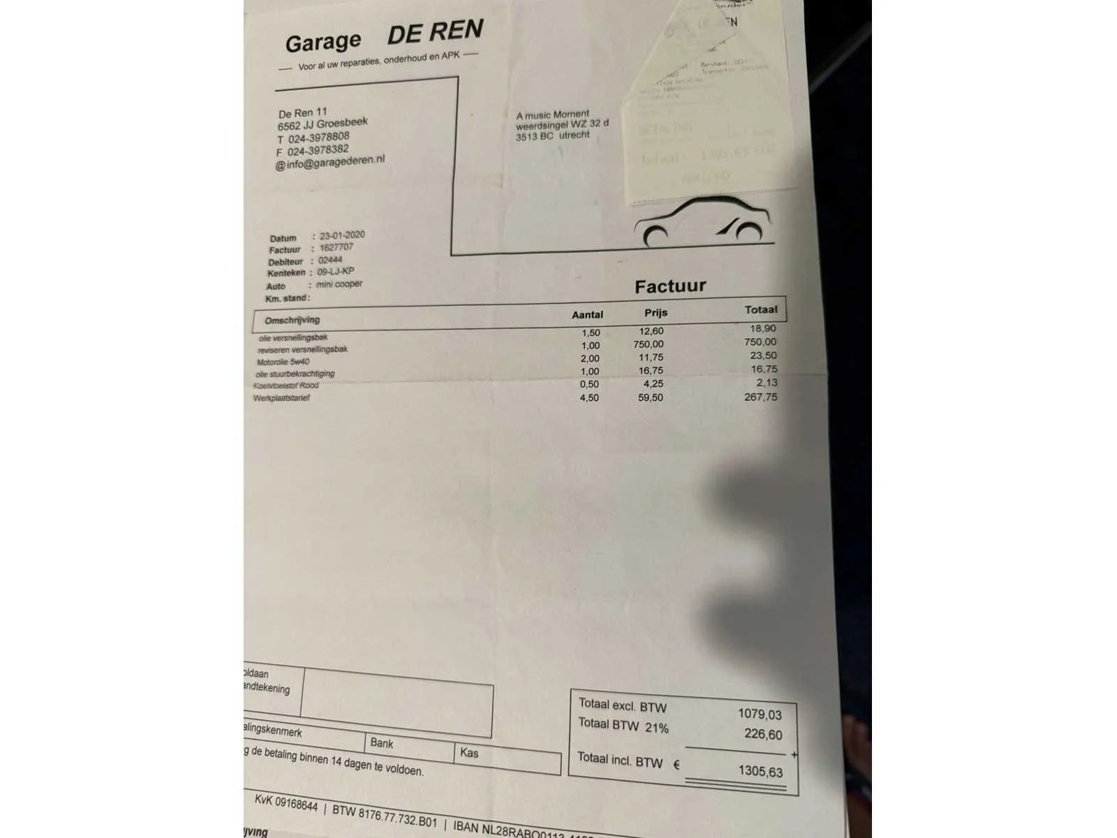 Kenteken: 09-LJ-KP Merk: Mini Model: Mini Type: 1.6 Cooper Chili Afgelezen kilometerstand: 233602km Cilinderinhoud: 1598cc Vermogen (kW): 85kW Brandstof: Benzine Chassisnummer: WMWRC31020TB78988 Laadvermogen: 0kg NAP status: Logisch Datum eerste toelating: 2003-01-18 Datum eerste toelating (NL): 2003-01-18 APK vervaldatum: 2025-11-11 Vermogen (pk): 116hp Energielabel: D Aandrijving: FWD Aantal zitplaatsen: 4 Maximaal trekgewicht ongeremd: 500kg Maximaal trekgewicht geremd: 650kg Kleur: grijs Transmissie: Handgeschakeld Stuurwiel: links Emissieklasse: 4 Aantal deuren: 2 Ledig gewicht: 1050kg Aantal cilinders: 4 Carrosserie: hatchback CO2-uitstoot NEDC: 163 Onderhoudshistorie: Ja gedeeltelijk Carfax Link: https://was.carfax.eu/v0/api/ccdid/5100016408/svc/201/vinreg/09LJKP/checksum/eyJhbGciOiJIUzI1NiIsInR5cCI6IkpXVCJ9.eyJleHAiOjE3NjE0ODY0MTJ9.ChBSEaG_4UTT_AeWe1hCie8Ij-dTOPOzQSQwrN7r-Ys startinformatie : Start en rijdt