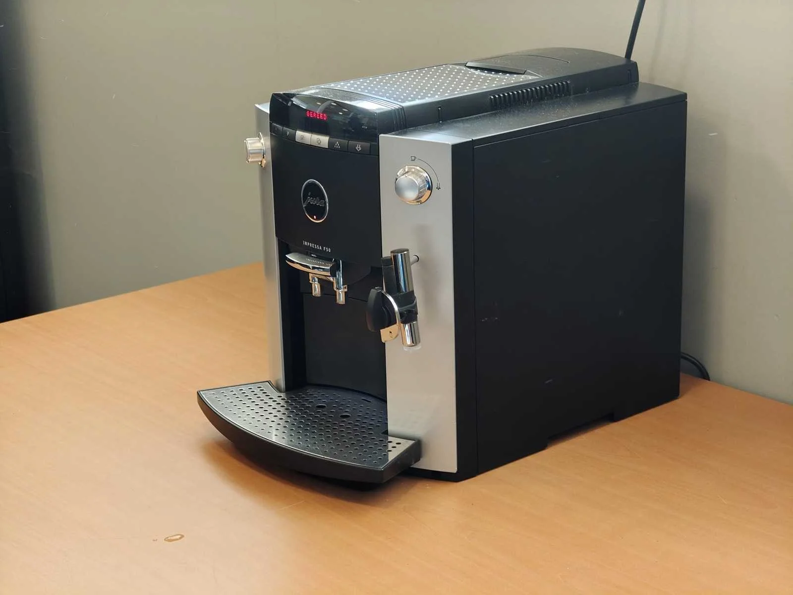 Aanvullende Informatie: jura F50 impressa, heeft net een grote onderhoudsbeurt gekregen. Ben jij op zoek naar een betrouwbaar koffiezetapparaat dat eruitziet én werkt als nieuw? Dit apparaat is niet vaak gebruikt en maakt heerlijke koffie – snel, stil en eenvoudig. Perfect voor thuis of op kantoor! Merk: jura Model: F50 Product type: Impressa Koffie- & espressomachine: true Kleur: zwart met chroom