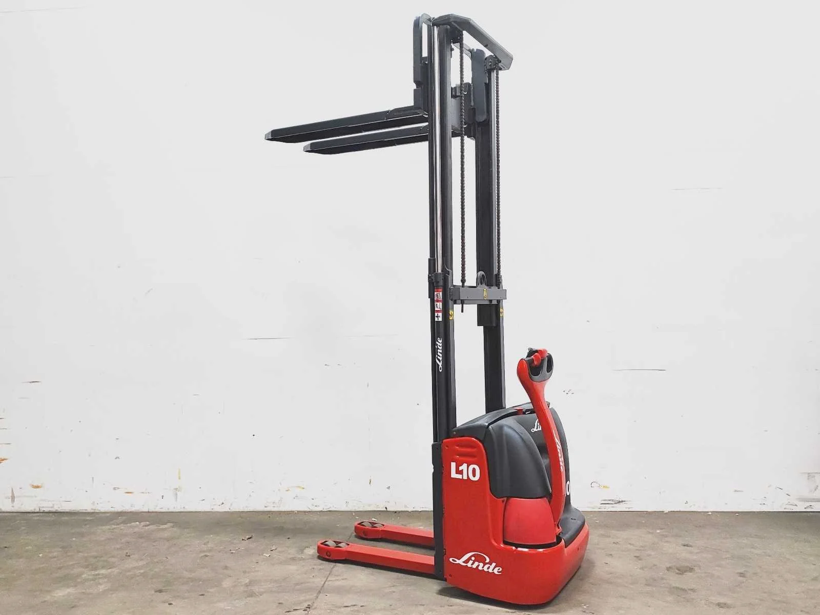 Linde L10 elektro stapelaar v.v. duplo mast Merk: Linde Type: L10 Bouwjaar: 2008 Serienummer: W4X379W02033 Hefvermogen: 1000kg Hefhoogte: 2500mm Lepellengte: 1150mm Afgelezen urenstand: 2507 Eigen gewicht: 855kg Minimale doorrijhoogte: 1670mm Totale afmeting L: 1900mm Totale afmeting Breedte: 820mm Totale afmeting Hoogte: 1670mm Accu lader: true