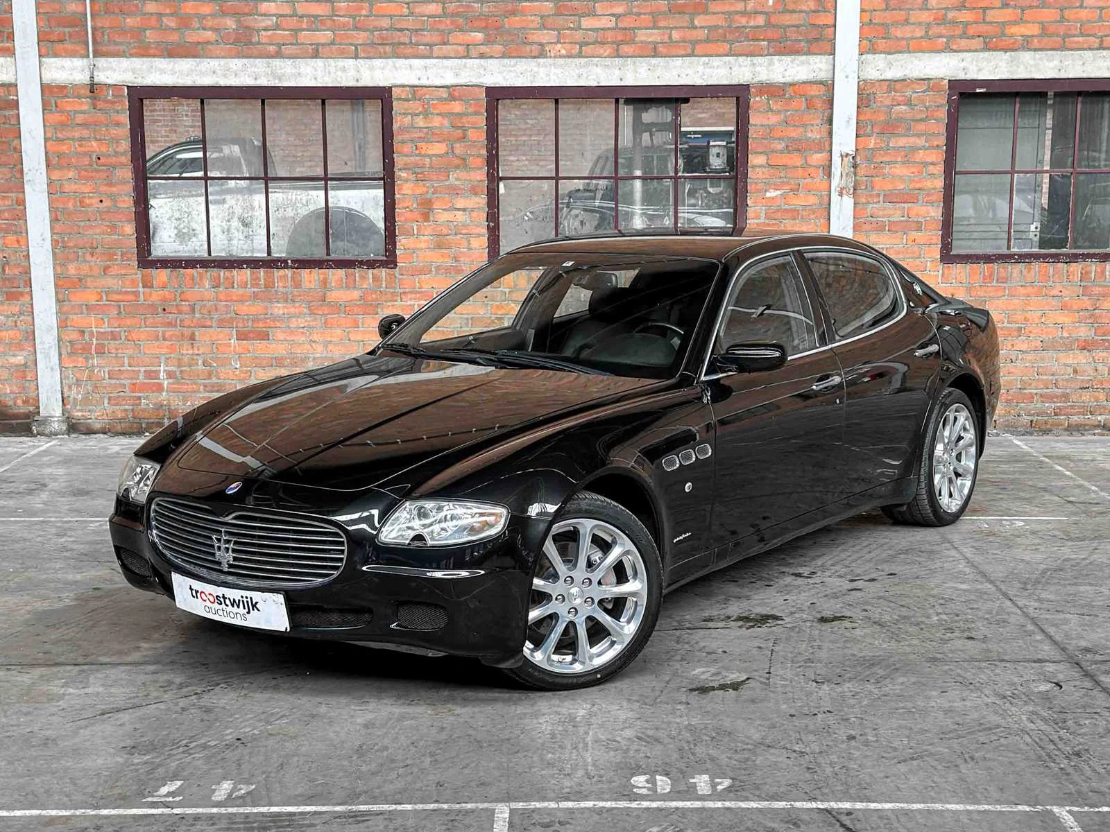 Merk: Maserati Model: Quattroporte Type: 4.2 V8 Afgelezen kilometerstand: 41000km Brandstof: Benzine Chassisnummer: ZAMCD39J000020810 Datum eerste toelating: 2005-01-01 Vermogen (pk): 400hp Aandrijving: Achterwielaandrijving Kleur: Zwart Transmissie: Automaat Stuurwiel: Links Carrosserie: Sedan Nationaliteit documenten: Japanse documenten, invoerrechten en BTW zijn voldaan Onderhoudshistorie: Ja, gedeeltelijk