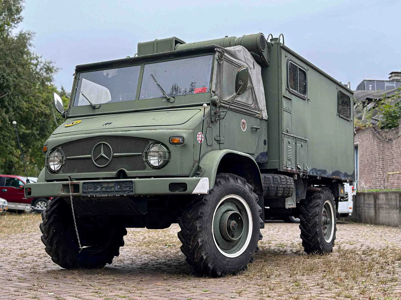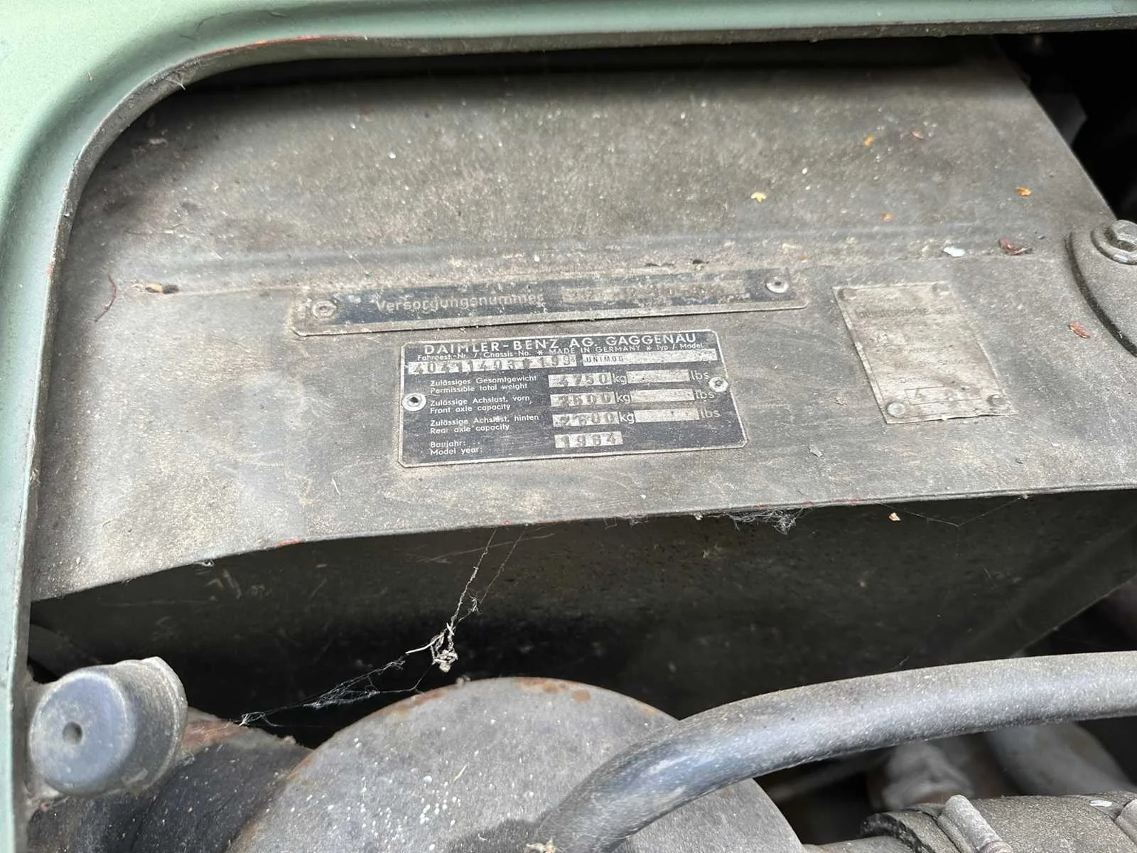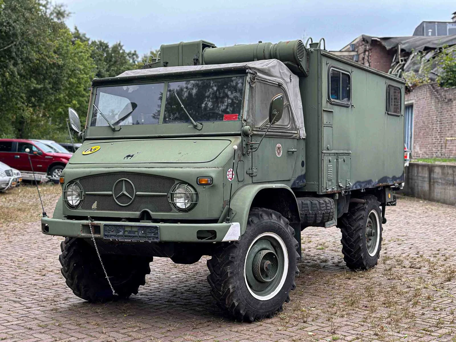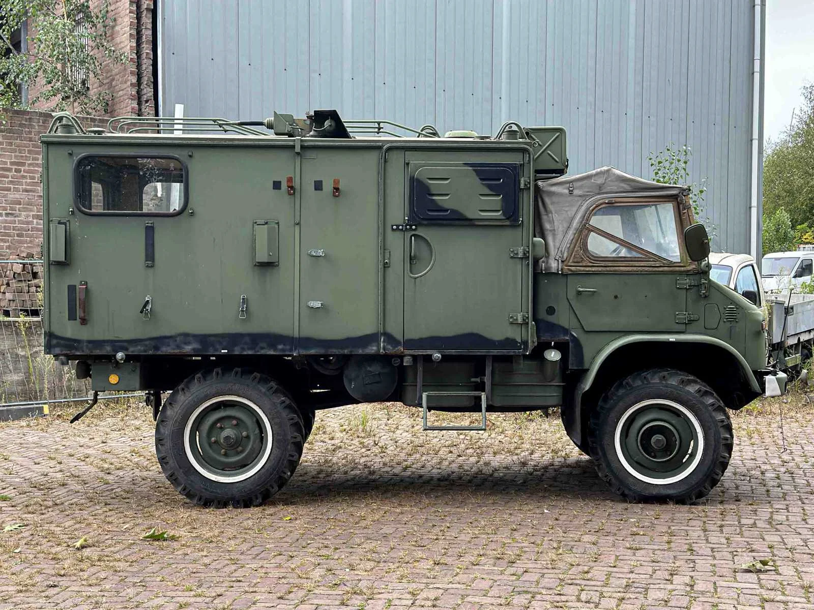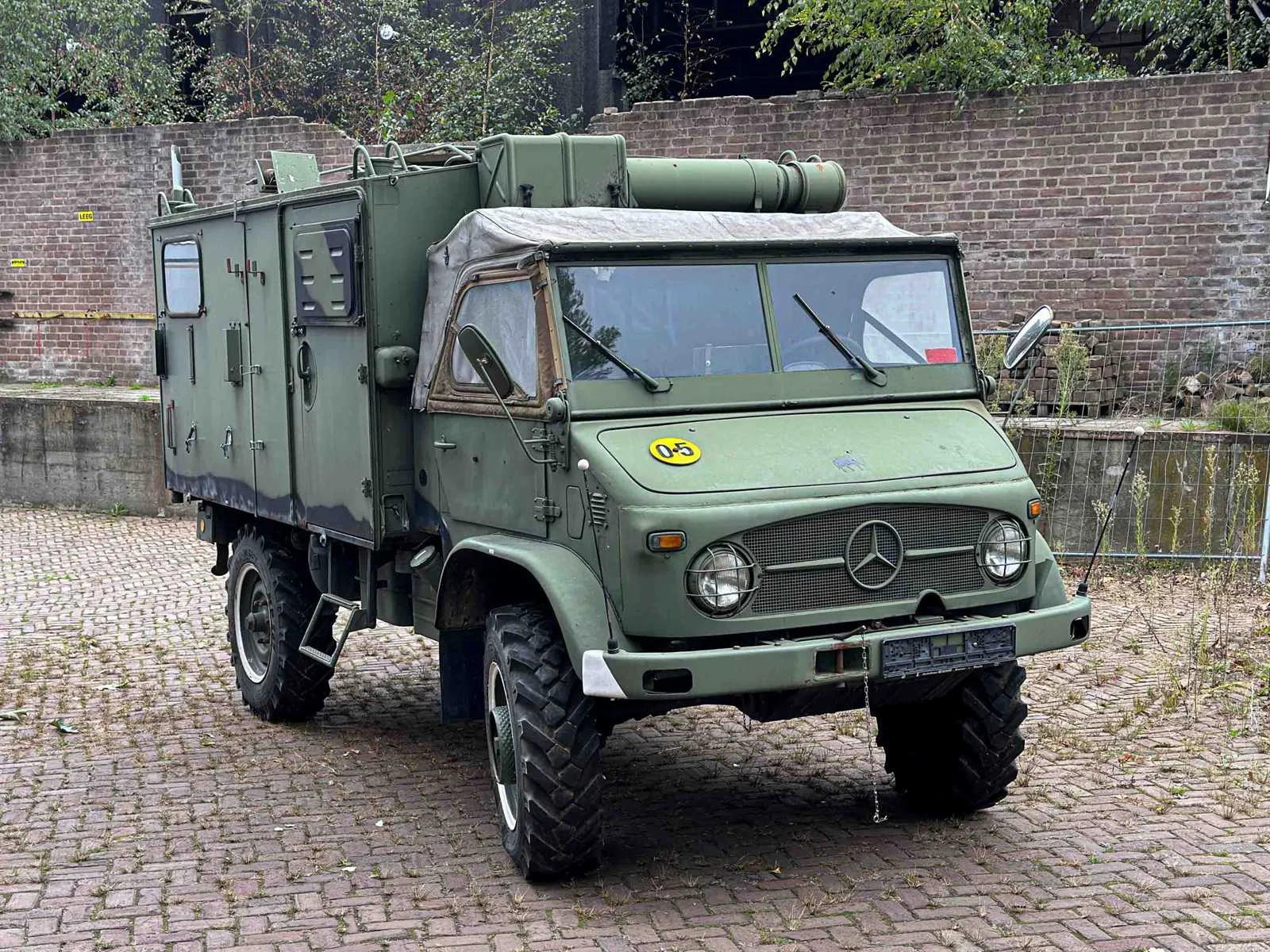 Merk: Mercedes Model: Unimog Type: 404 Afgelezen kilometerstand: 5201km Brandstof: Benzine Datum eerste toelating: 1971-07-01 Vermogen (pk): 80hp Aandrijving: Vierwielaandrijving Kleur: Leger groen Transmissie: Handgeschakeld