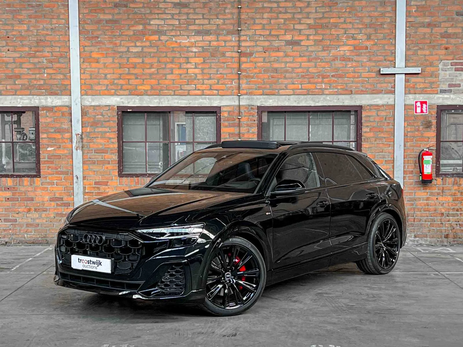 Merk: Audi Model: Q8 Type: 60 TFSIe Quattro S-Line Afgelezen kilometerstand: 1776km Cilinderinhoud: 2995cc Brandstof: Hybride (benzine / elektriciteit) Chassisnummer: WAUZZZF17SD025763 Datum eerste toelating: 2025-02-18 Vermogen (pk): 490hp Aandrijving: Vierwielaandrijving Aantal zitplaatsen: 5 Kleur: Mythos Zwart Metallic Transmissie: Automaat Stuurwiel: Links gestuurd Aantal deuren: 5 Carrosserie: SUV Nationaliteit documenten: Oostenrijkse kentekendocumenten Onderhoudshistorie: Ja volledig