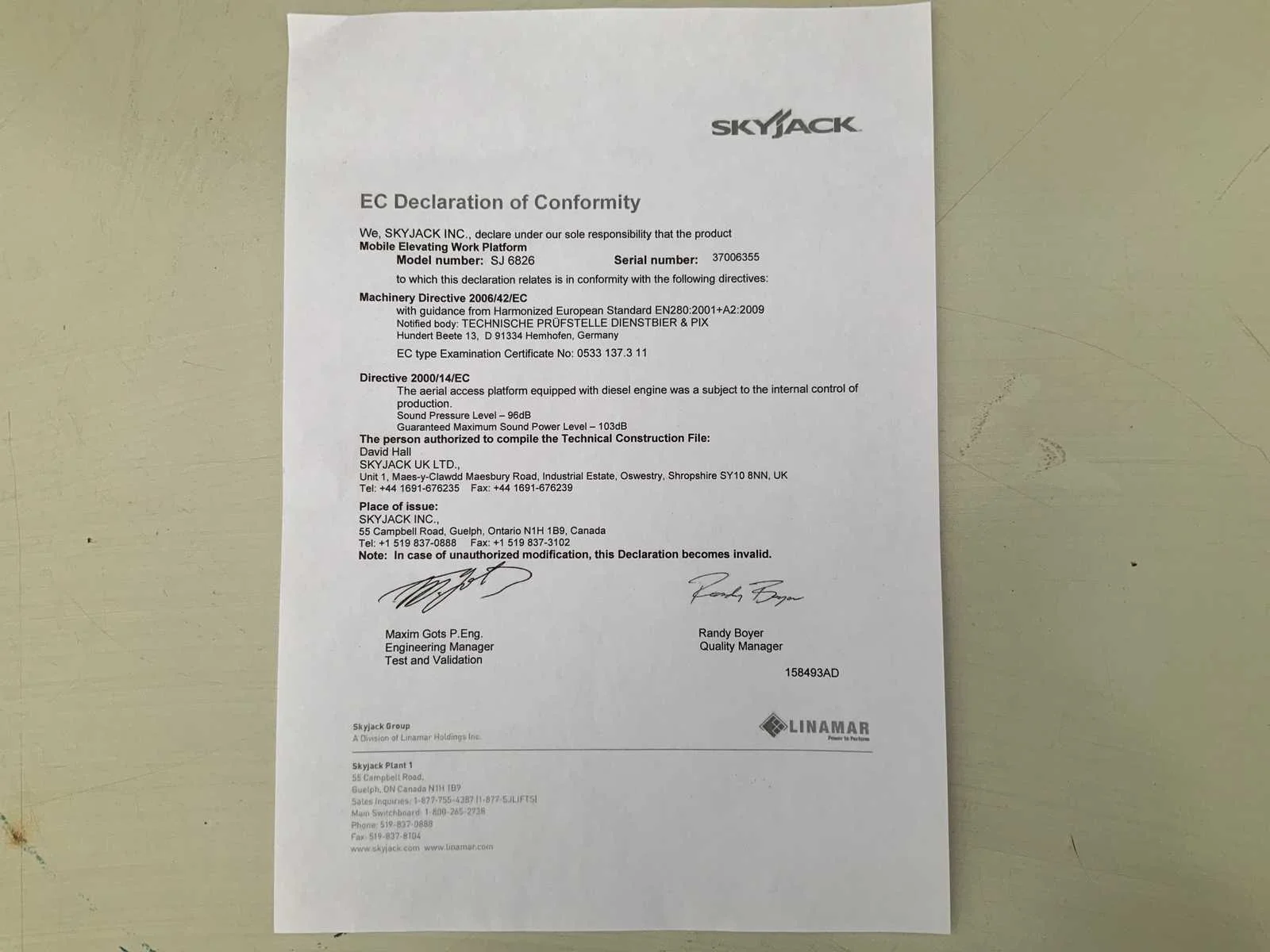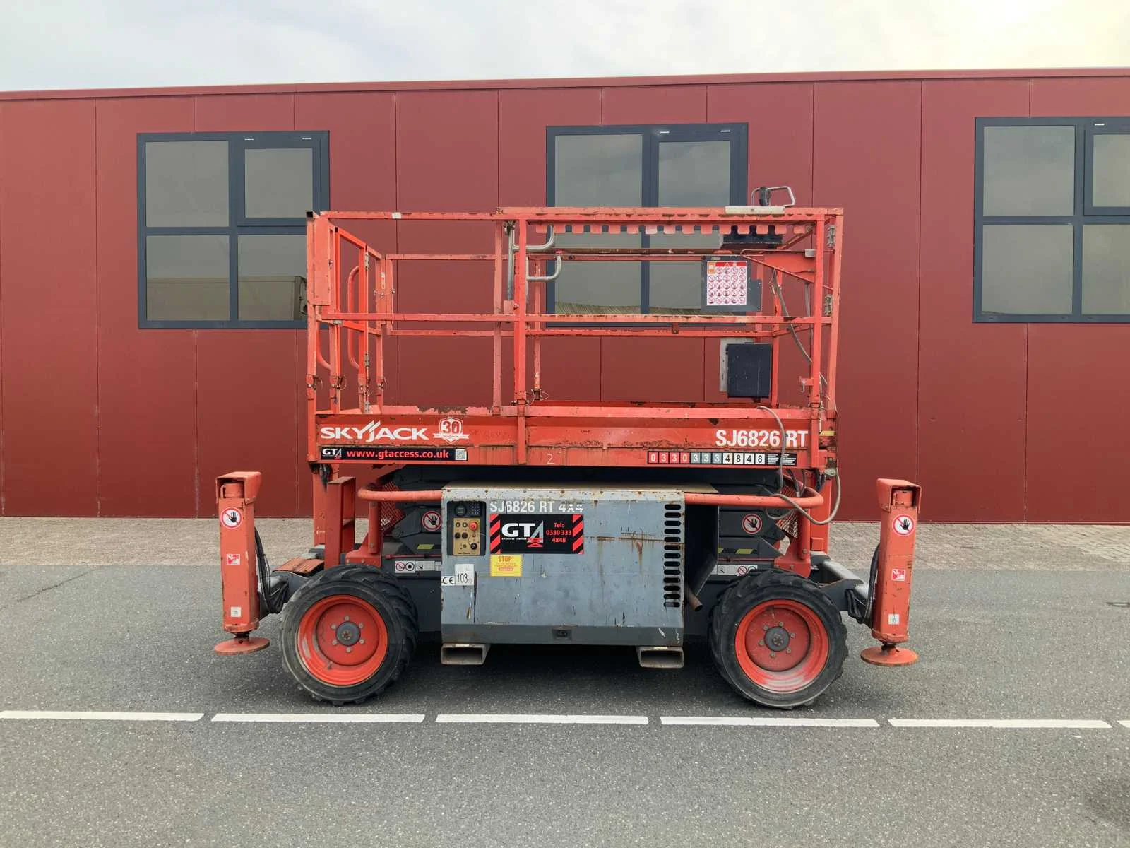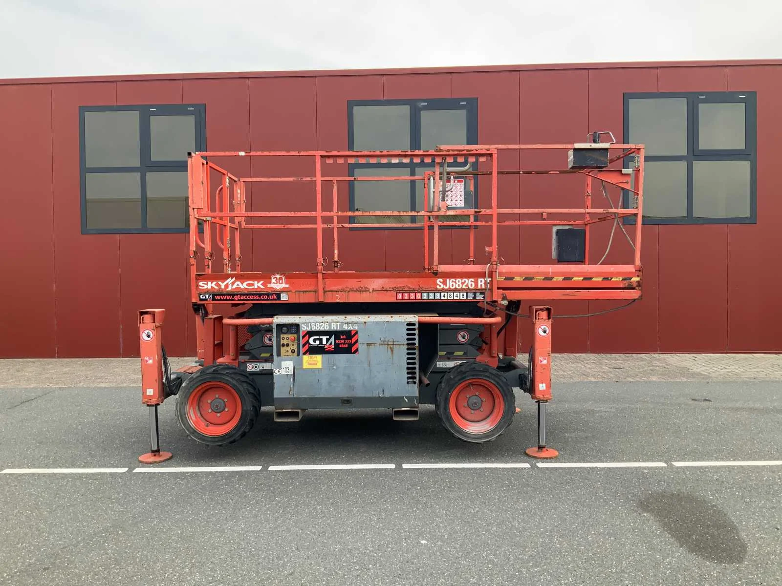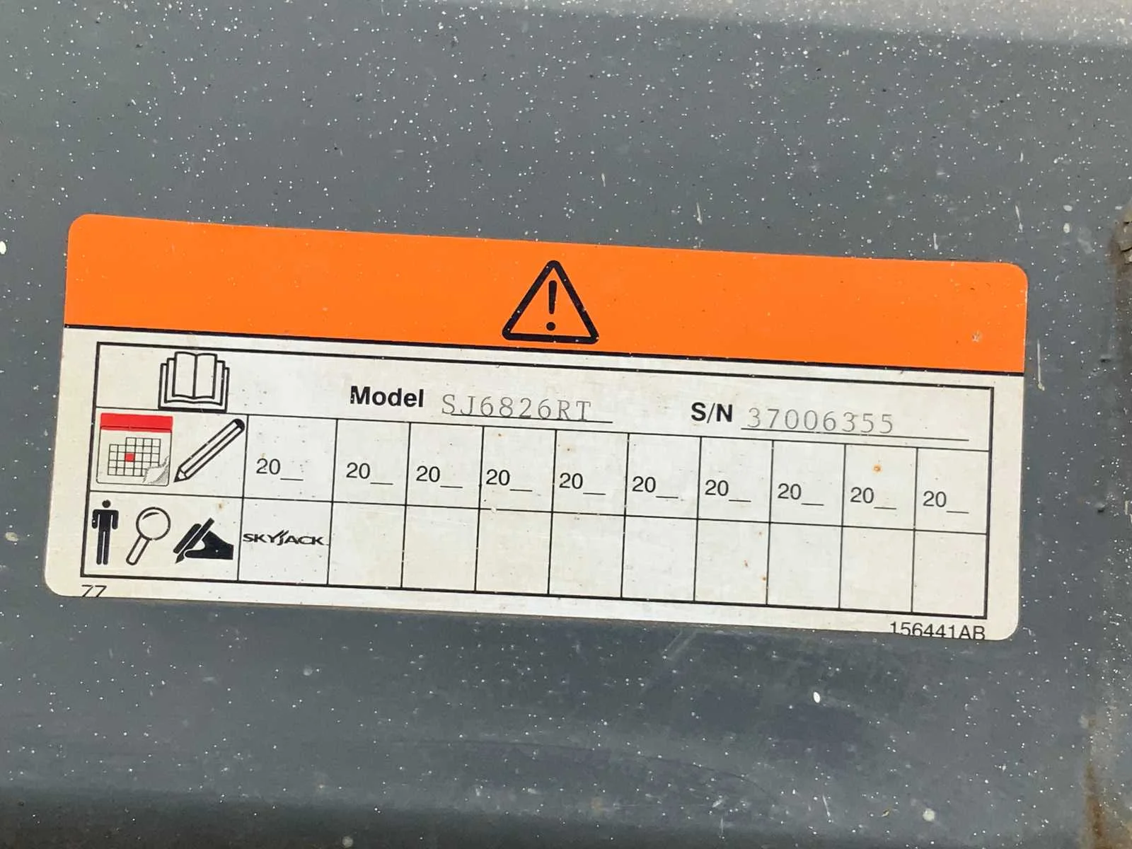 Met EC declaration of conformity, goed werkende machine met elektra op het platform. Merk: Skyjack Type: SJ6826RT Bouwjaar: 2016 Serienummer: 37006355 Diesel: true Schaarhoogwerker: true Werkhoogte: 9900mm Plateau afm. l: 4800mm Plateau afm. b: 1750mm Platform capaciteit: 567kg Afgelezen urenstand: 1549 Eigen gewicht: 3305kg Totale afmeting L: 3350mm Totale afmeting Breedte: 1750mm Totale afmeting Hoogte: 2350mm