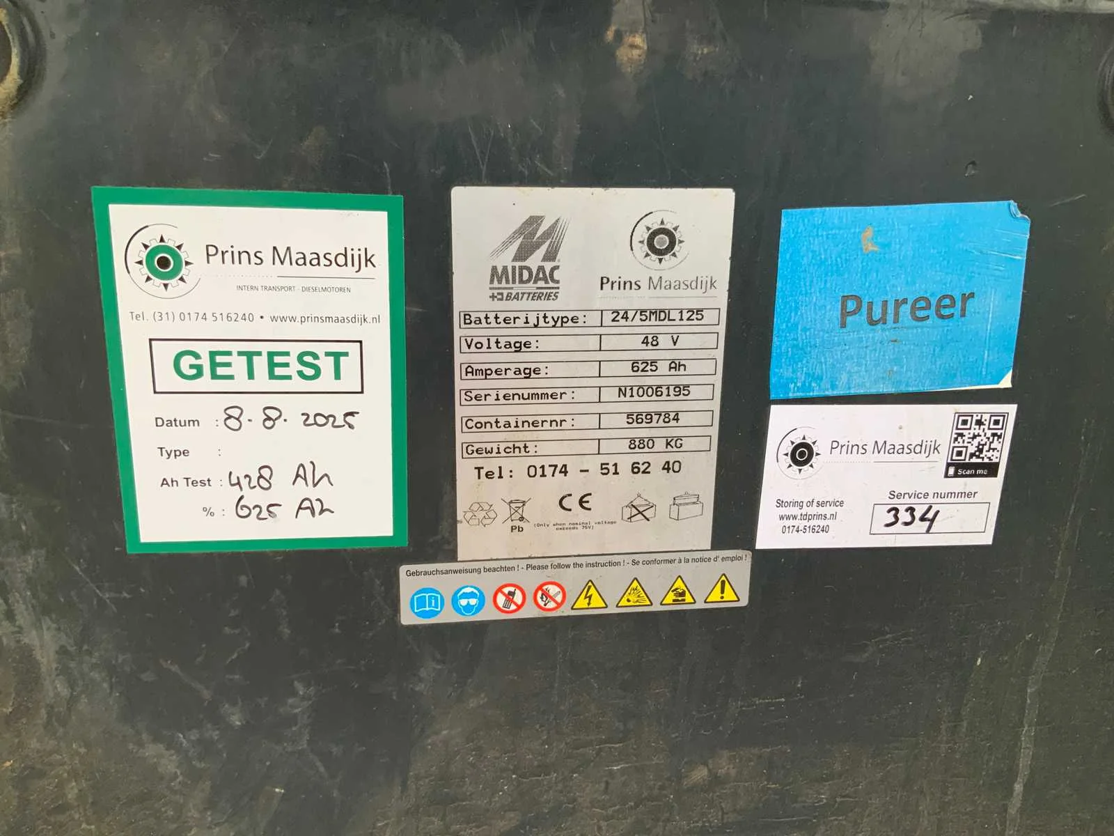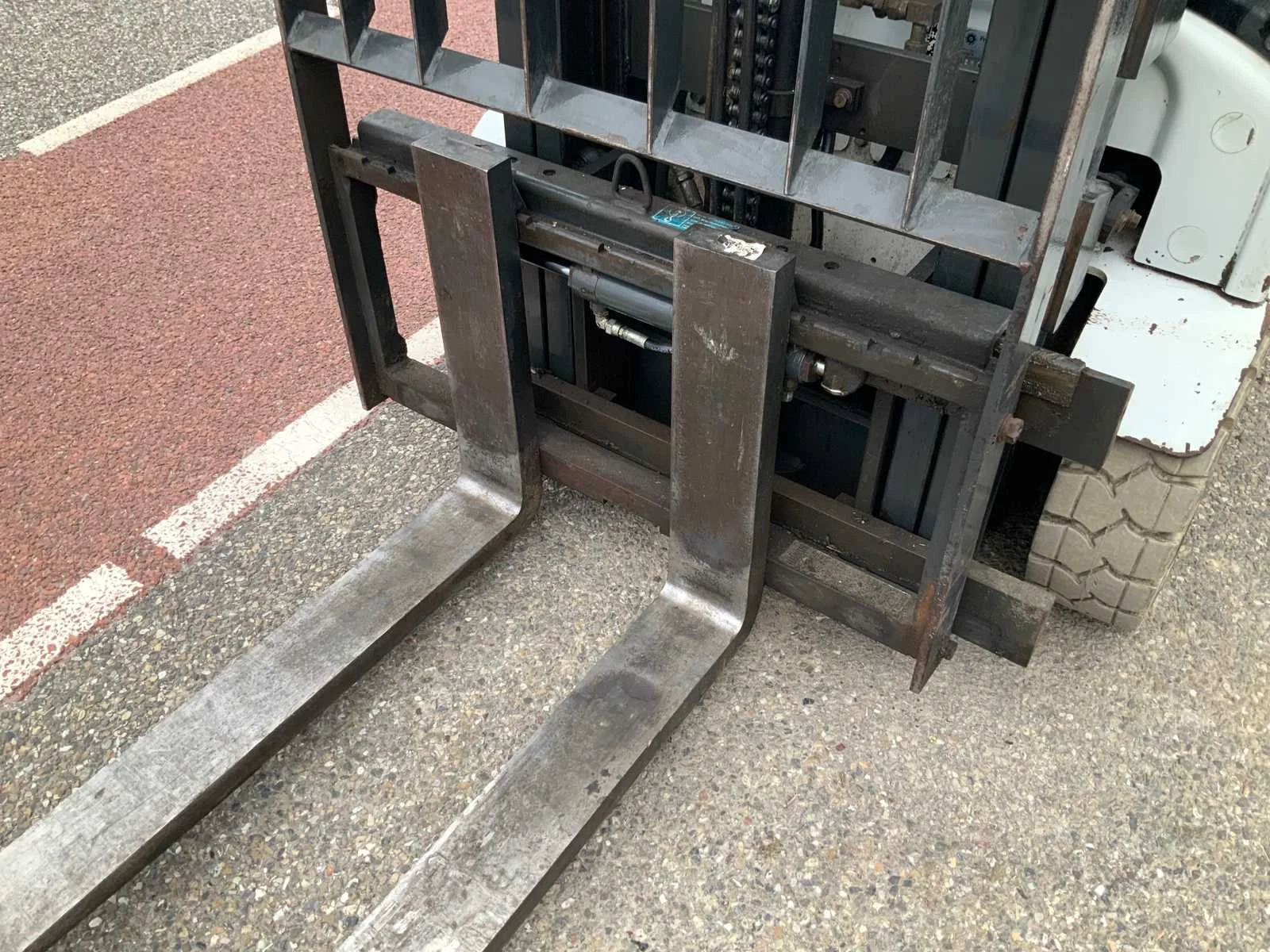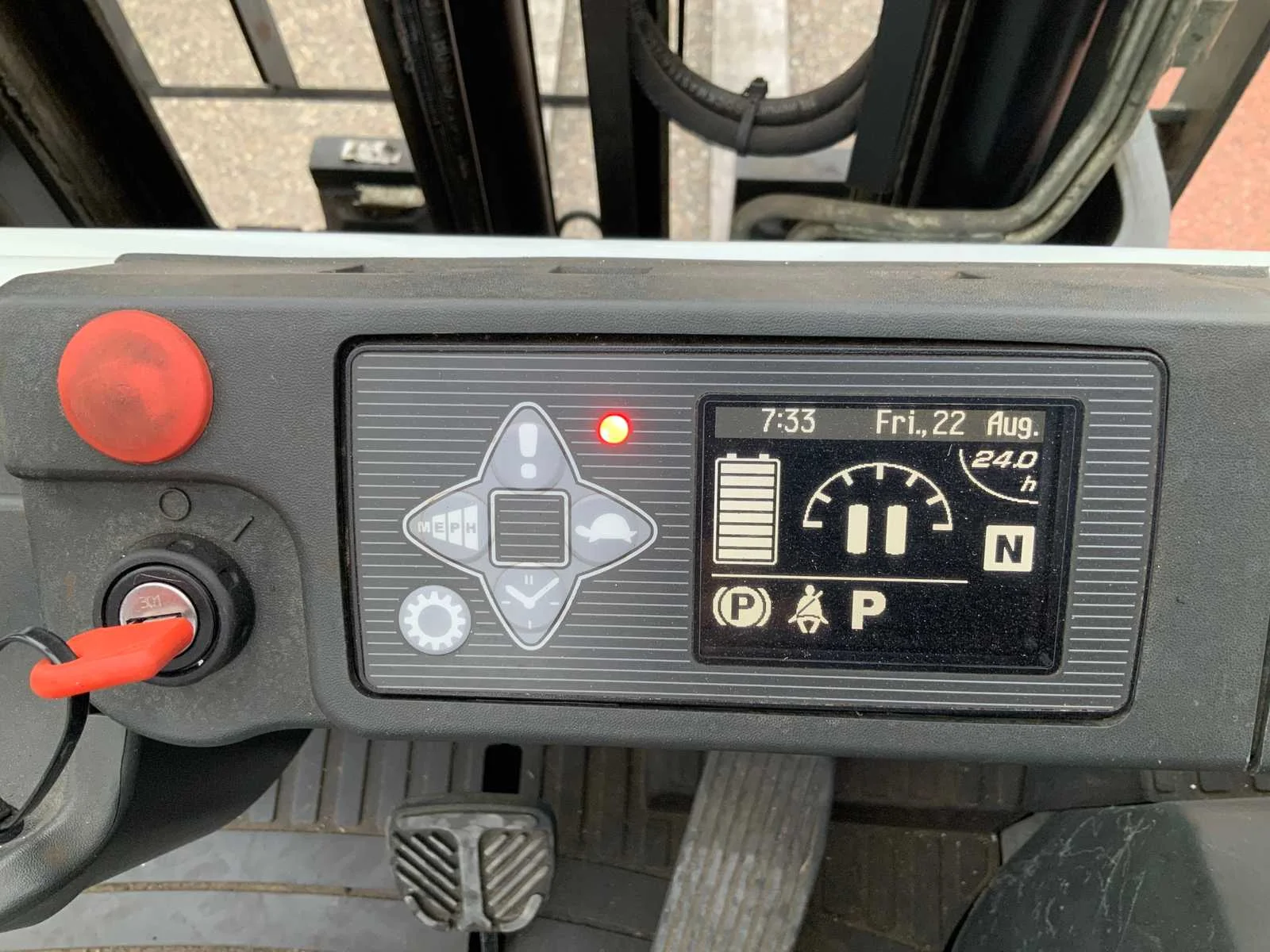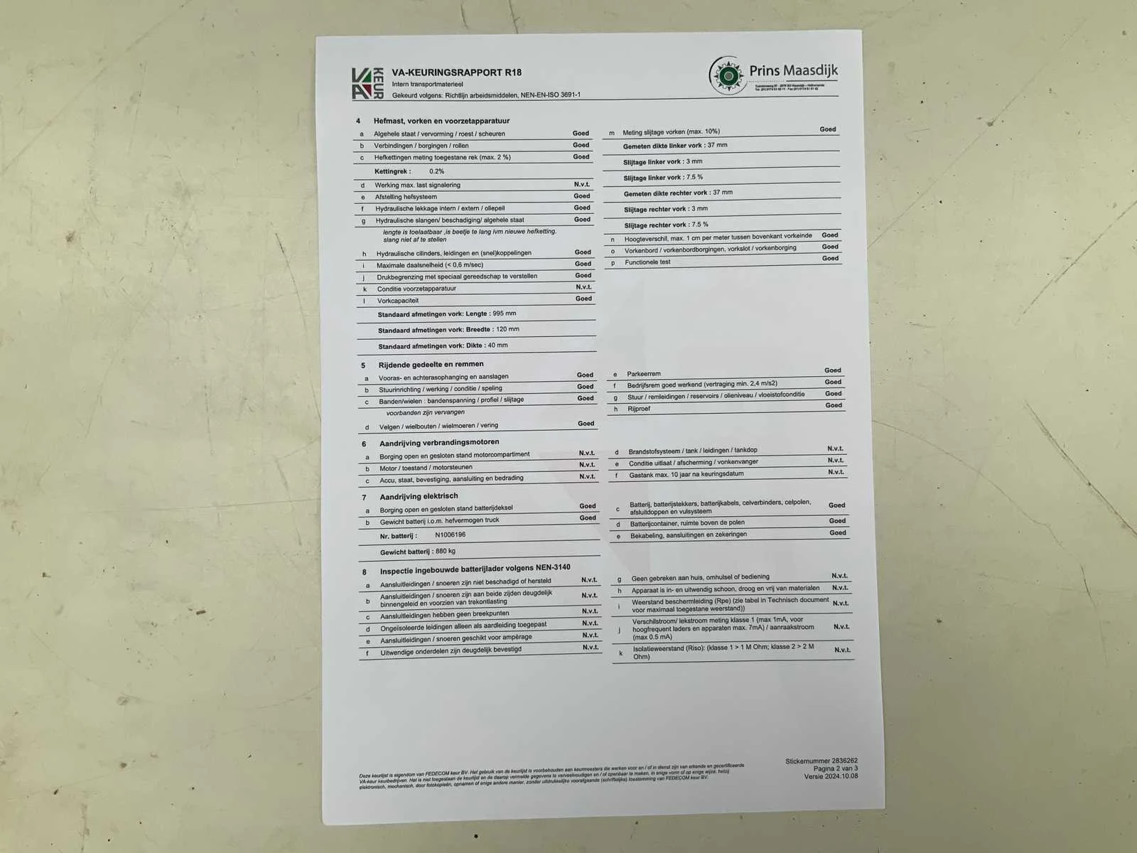 Accu getest en goedwerkende machine, gekeurd t/m maart 2026. Merk: UniCarriers Type: A2N1L16Q Bouwjaar: 2019 Serienummer: A2N1E701104 Brandstof: Elektrisch Mast: Duplex Soort band: Volrubber banden Aantal wielen: 4 Afgelezen urenstand: 7995 Accu lader: true Side-shift: true Duplex mast: true Eigen gewicht: 2239kg Hefvermogen: 1600kg Lepellengte: 1000mm Max. hefhoogte: 3300mm Vol rubber banden: true Minimale doorrijhoogte: 2130mm Totale afmeting L: 3000mm Totale afmeting Breedte: 1120mm Totale afmeting Hoogte: 2130mm