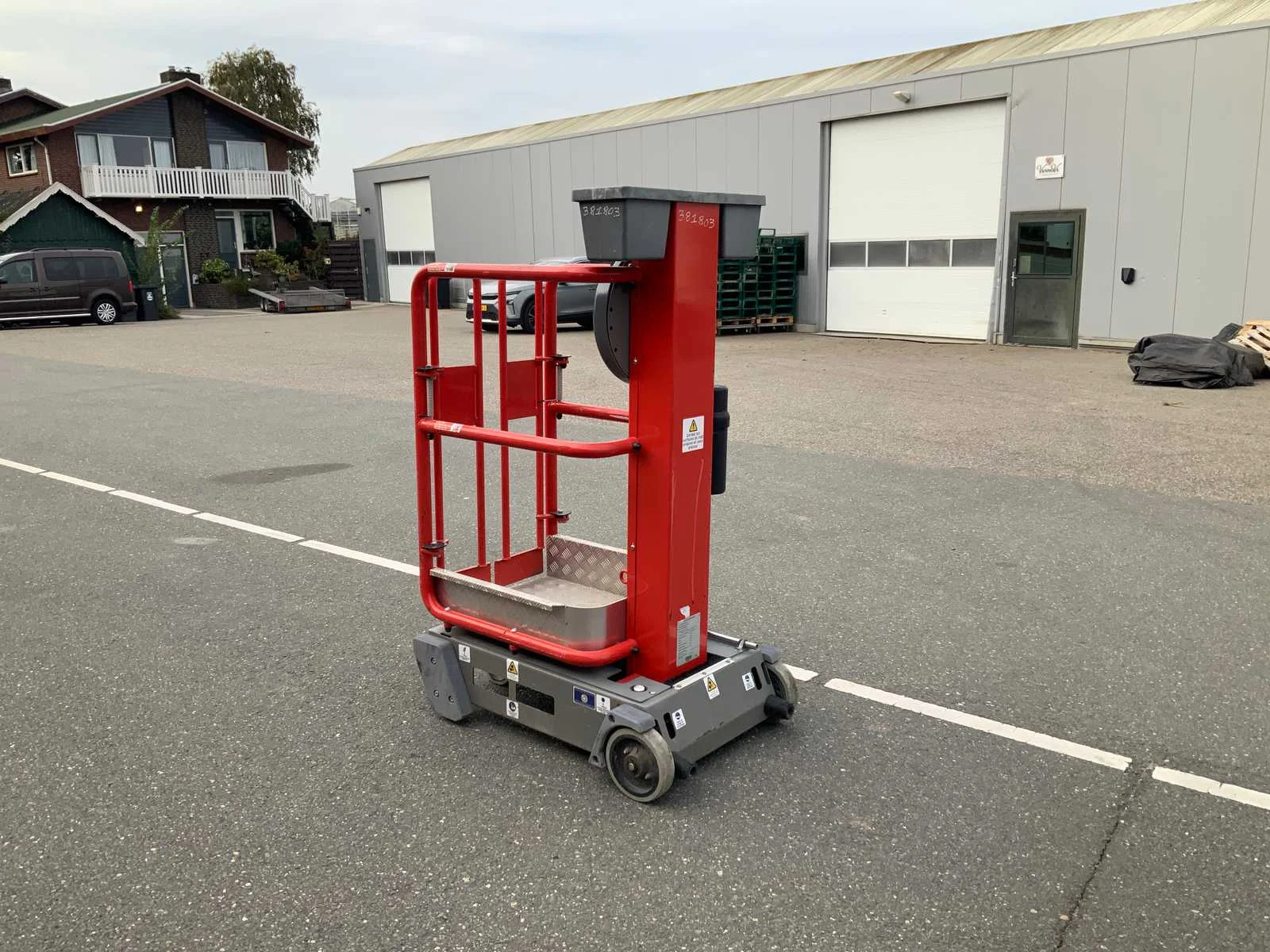 Merk: JLG Type: Pecolift Bouwjaar: 2018 Serienummer: 62971318G Masthoogwerker: true Werkhoogte: 3500mm Platform capaciteit: 150kg Eigen gewicht: 180kg Totale afmeting L: 1100mm Totale afmeting Breedte: 700mm Totale afmeting Hoogte: 1600mm