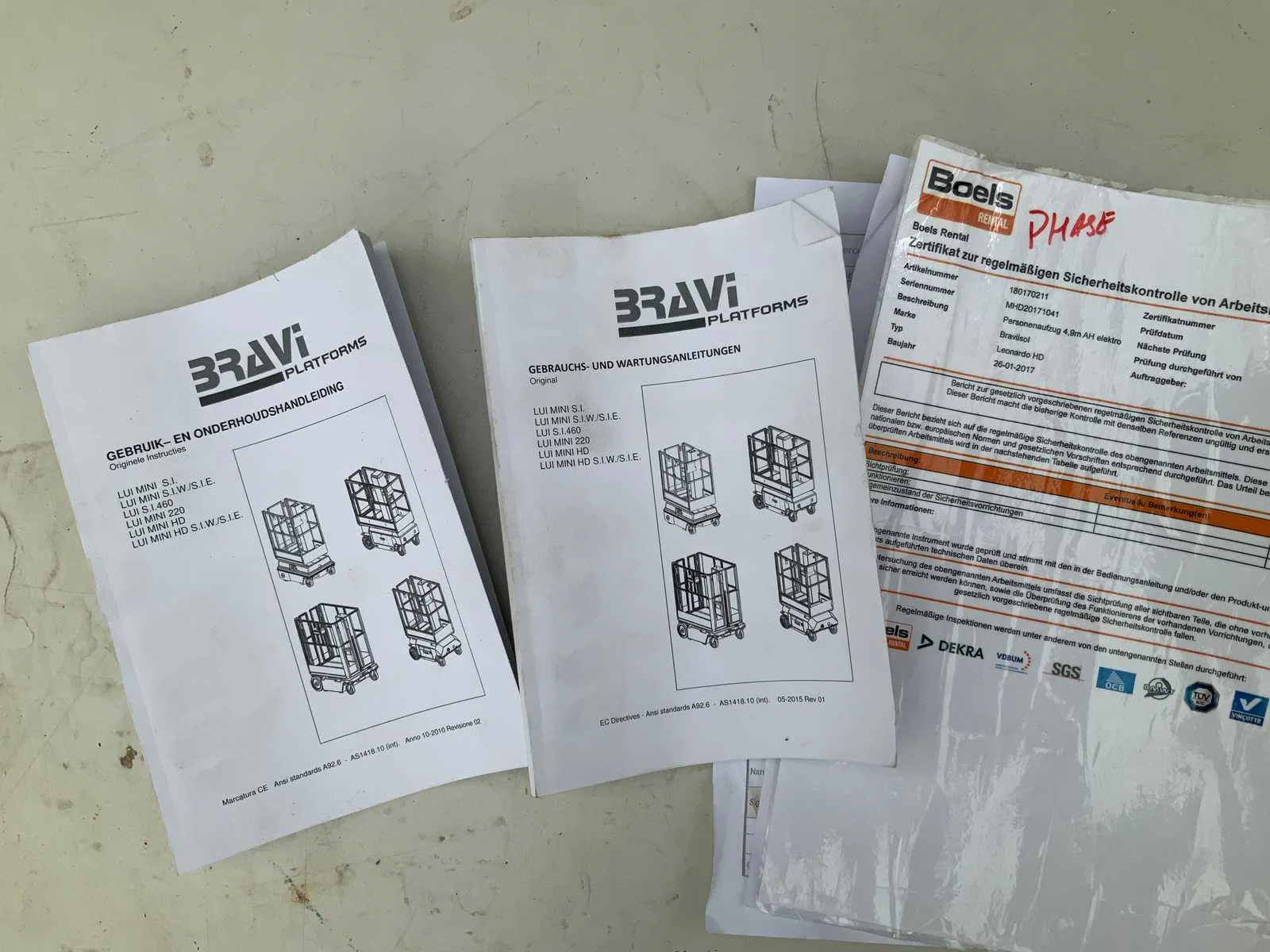 Met gebruik en onderhoudshandleiding, accu leeg niet kunnen testen. Merk: Braviisol Type: Lui Mini HD Bouwjaar: 2019 Serienummer: MHD20191079 Elektrisch: true Masthoogwerker: true Werkhoogte: 4900mm Platform capaciteit: 233kg Accu lader: true Eigen gewicht: 510kg Totale afmeting L: 1200mm Totale afmeting Breedte: 750mm Totale afmeting Hoogte: 1750mm