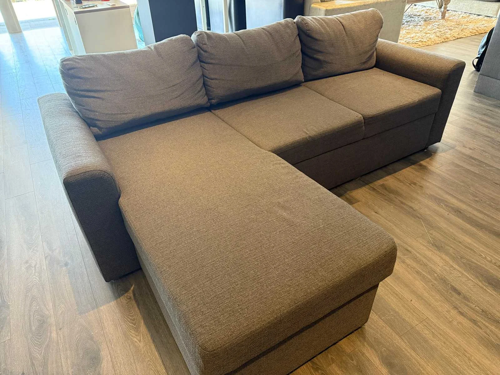 Bedden zijn nieuw gekocht in 2025 zie foto van factuur, nieuwprijs per stuk bij Leen Bakker is € 649,- afmeting slaapgedeelte 132 x 187 cm en geïntegreerde opbergruimte, slaapbank bestaat uit twee delen en losse kussens. Merk: Turijn Lengte: 215cm Breedte: 145cm Hoogte: 82cm Zithoogte: 46cm Materiaal: Stof