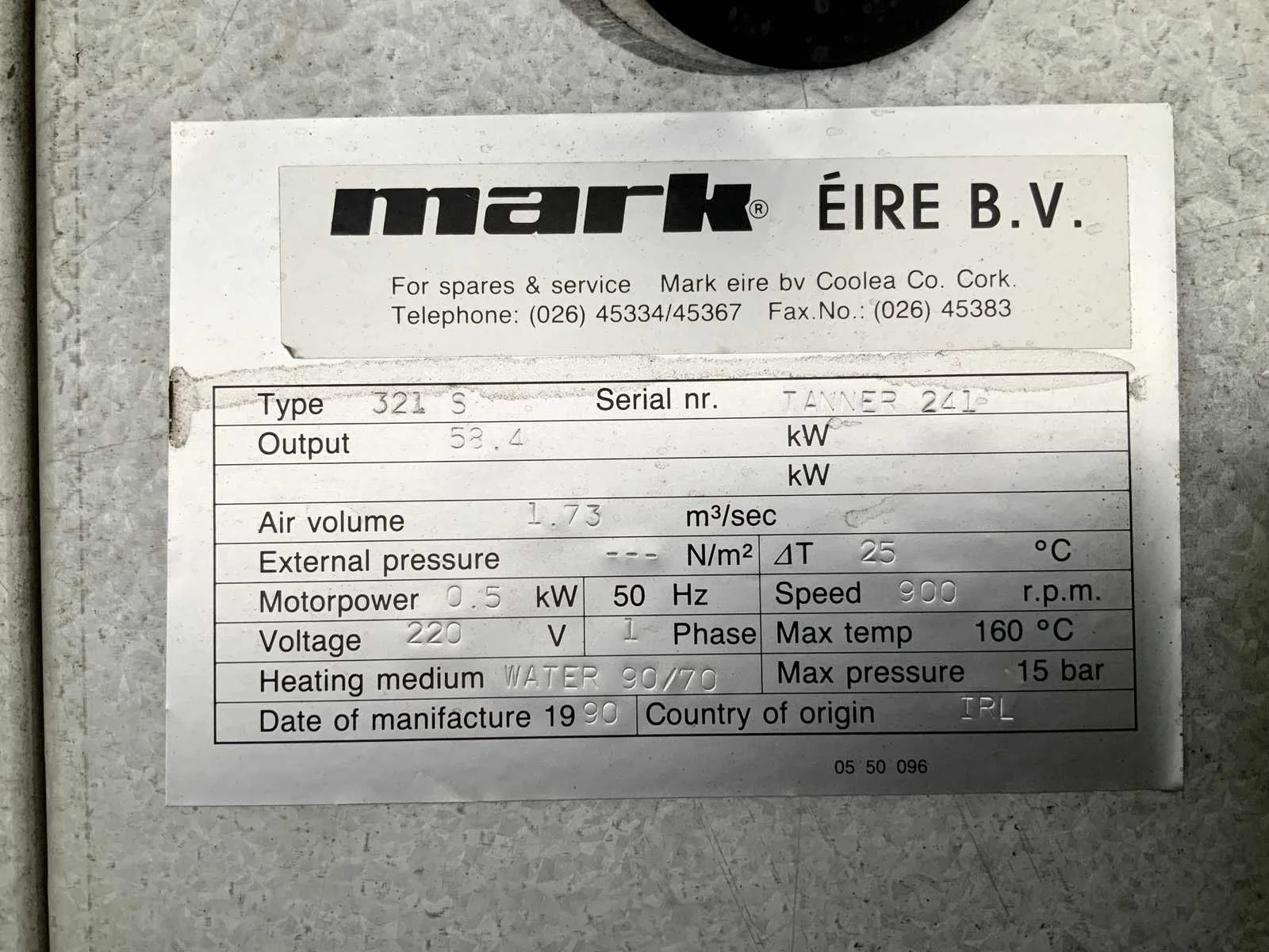 Zie typeplaatje voor technische specificaties, werkend uit bedrijf genomen. Merk: Mark Type: 321S Serienummer: Tanner241 Totale afmeting L: 800mm Totale afmeting Breedte: 800mm Totale afmeting Hoogte: 500mm