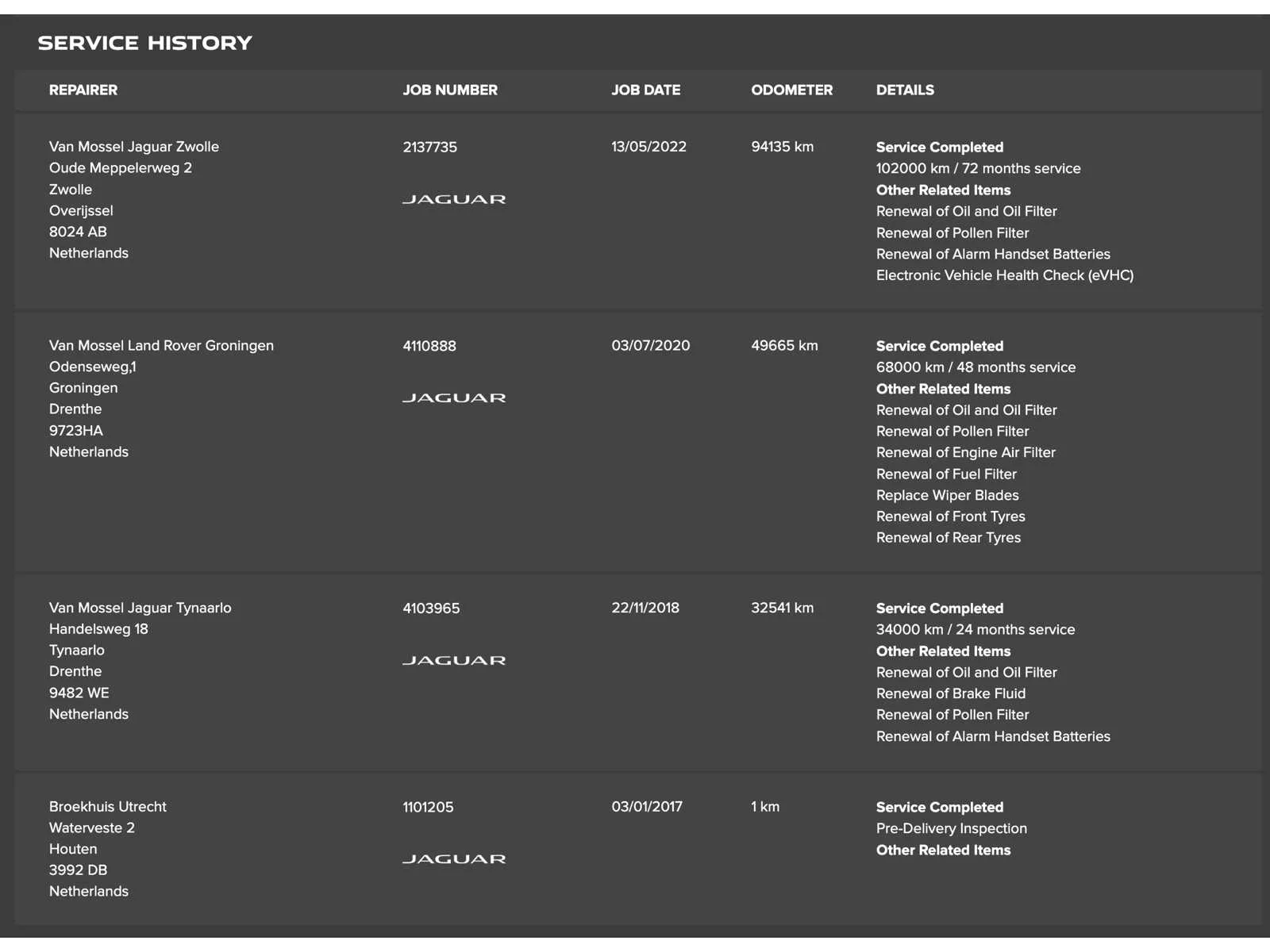 LET OP!: voor Nederlandse kopers en kopers van buiten de EU komt de Rest-BPM er nog bij, deze verschijnt later op de factuur en bedraagt €1.646,-. Dus totale biedprijs + €1.646,-. De totaalprijs bij het bieden is dus excl. BPM! (This is only relevant for Dutch buyers and buyers from outside the EU) Important: international buyers (within the EU) can reclaim the remaining amount Dutch BPM tax ('rest-BPM'). For this lot, buyer pays the BPM tax as a deposit and after registering this lot in your country, the deposit will be refunded. Dutch and non-EU buyers will pay the BPM via the invoice of this lot. Kenteken: ND-065-G Merk: Jaguar Model: XF Type: 2.0d Portfolio Afgelezen kilometerstand: 185801km Cilinderinhoud: 1999cc Vermogen (kW): 132kW Brandstof: Diesel Chassisnummer: SAJBB4BN4GCY22071 Laadvermogen: 0kg NAP status: Logisch Datum eerste toelating: 2017-01-06 Datum eerste toelating (NL): 2017-01-06 APK vervaldatum: 2026-01-06 Vermogen (pk): 179hp Aandrijving: achterwielaandrijving Aantal zitplaatsen: 5 Maximaal trekgewicht ongeremd: 750kg Maximaal trekgewicht geremd: 2000kg Kleur: groen Transmissie: Automaat Stuurwiel: Links gestuurd Emissieklasse: 6 Aantal deuren: 4 Ledig gewicht: 1613kg Aantal cilinders: 4 Carrosserie: sedan Nationaliteit documenten: Nederlandse kentekendocumenten Onderhoudshistorie: ja gedeeltelijk Carfax Link: https://was.carfax.eu/v0/api/ccdid/5100016408/svc/201/vinreg/ND065G/checksum/eyJhbGciOiJIUzI1NiIsInR5cCI6IkpXVCJ9.eyJleHAiOjE3NTkxMjk3NjR9.IdjNyA1M8p_S71JF1U9dK-7Zql88yVAjRHoshfysDbE