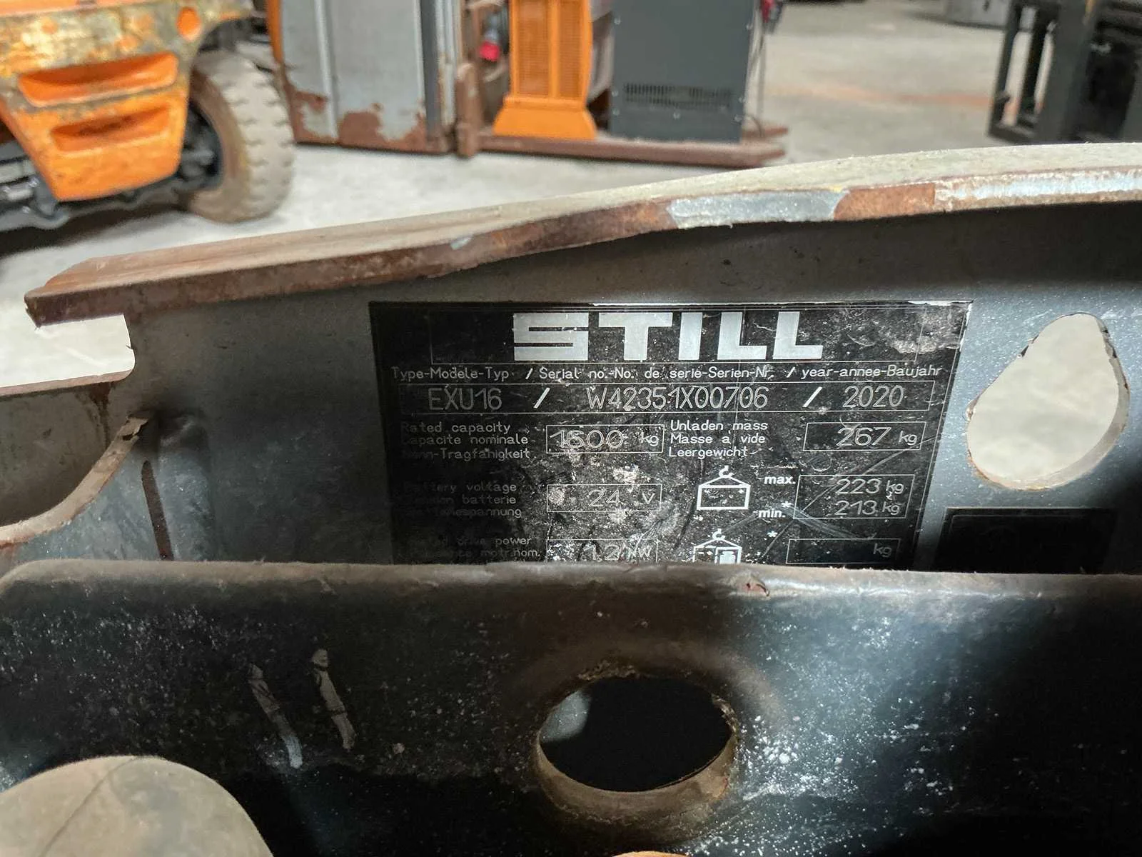 Merk: STILL Type: EXU-16 Bouwjaar: 2020 Serienummer: W42351X00706 Hefvermogen: 1600kg Lepellengte: 1000mm Afgelezen urenstand: 3086