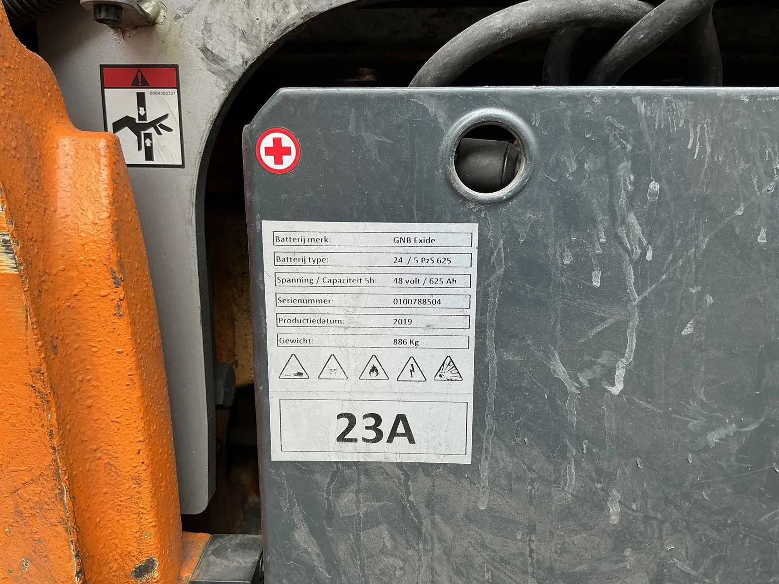 Merk: STILL Type: RX20-18 Bouwjaar: 2019 Serienummer: 516223V00154 Mast: Triplex Aantal wielen: 3 Afgelezen urenstand: 9999 Free-lift: true Side-shift: true Triple mast: true Hefvermogen: 1800kg Lepellengte: 1100mm Hefhoogte: 4470mm Minimale doorrijhoogte: 2160mm