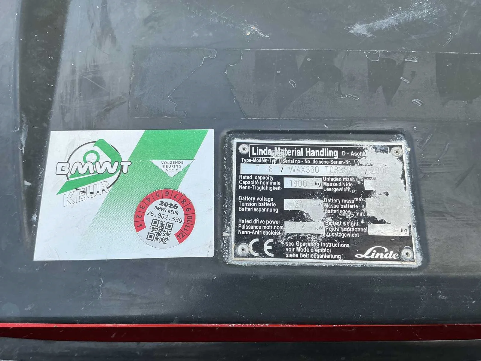 Merk: Linde Type: T18 Bouwjaar: 2006 Lepellengte: 1150mm Afgelezen urenstand: 648
