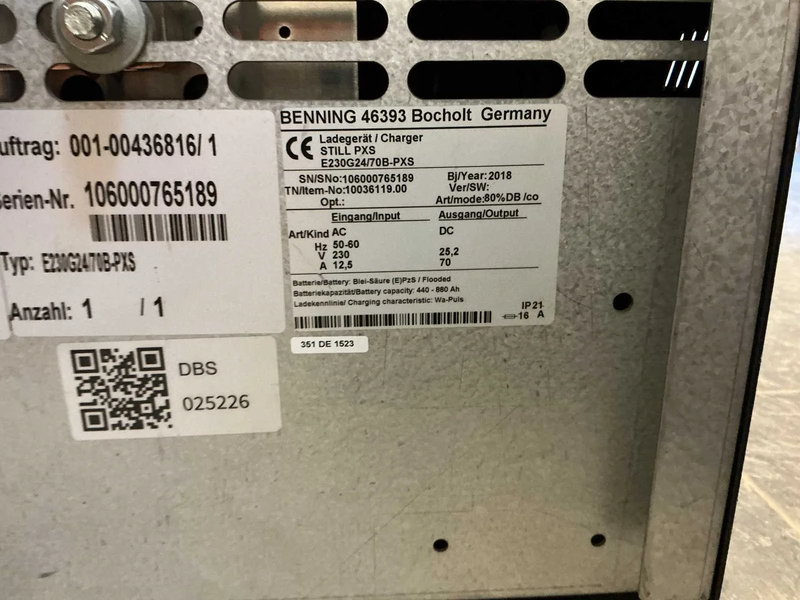 Merk: STILL Type: 24V 70A Bouwjaar: 2018 Spanning: 24V Laadstroom: 70A