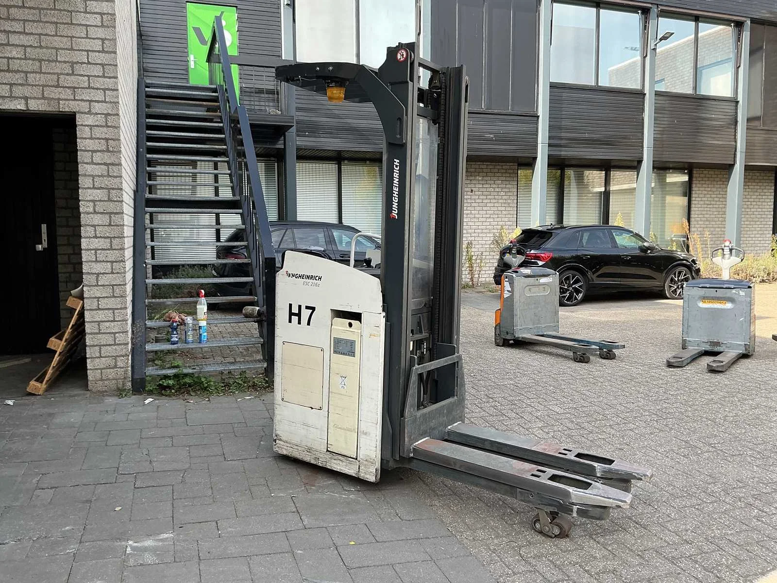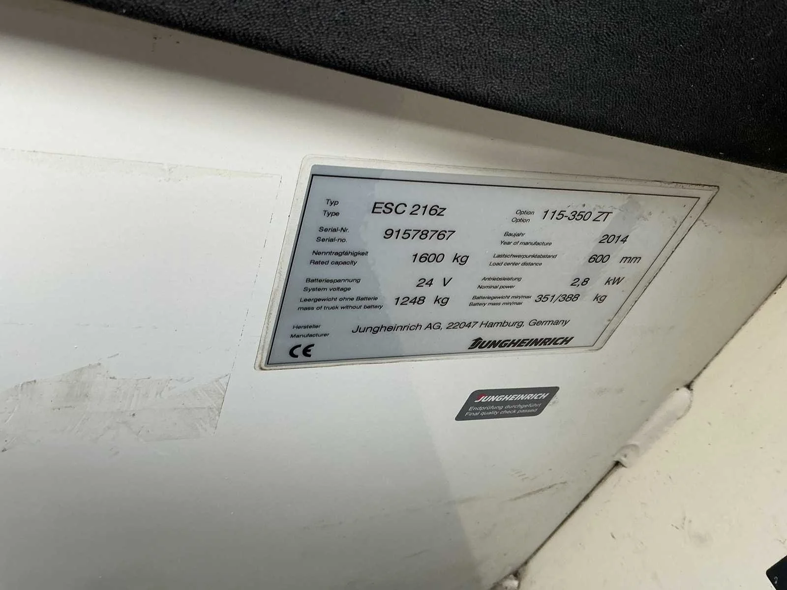 Merk: Jungheinrich Type: ESC 216Z Bouwjaar: 2014 Hefvermogen: 1600kg Hefhoogte: 3100mm Lepellengte: 1150mm Afgelezen urenstand: 3302 Minimale doorrijhoogte: 2500mm