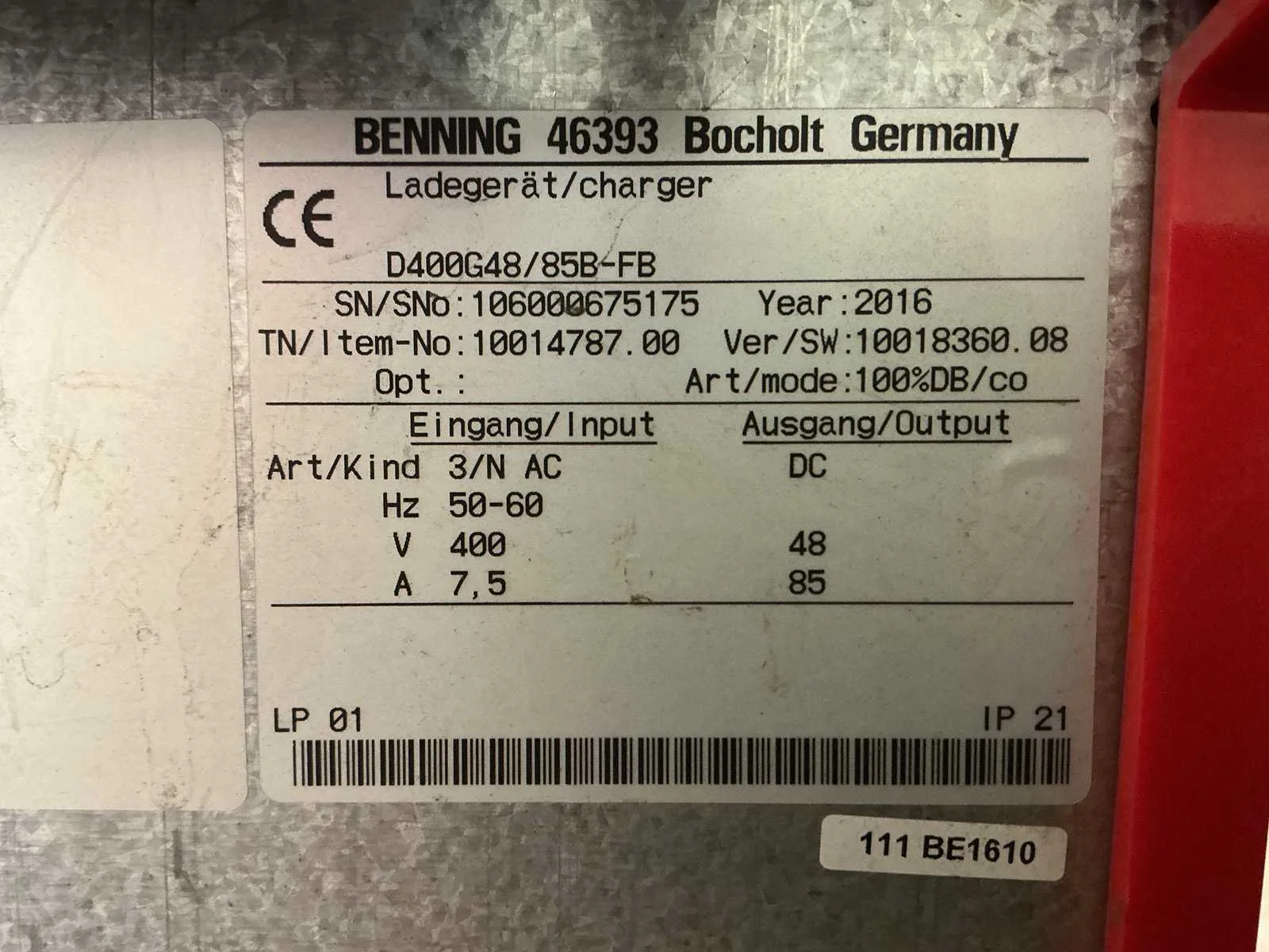Merk: BELATRON Type: 48V 85A Bouwjaar: 2016 Spanning: 48V Laadstroom: 85A