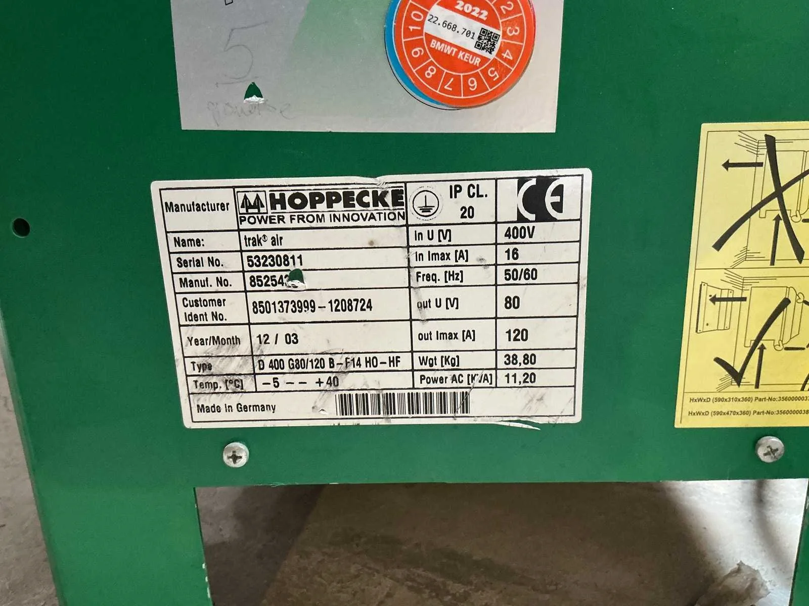 Merk: HOPPECKE Type: 80V 120A Bouwjaar: 2012 Spanning: 80V Laadstroom: 120A