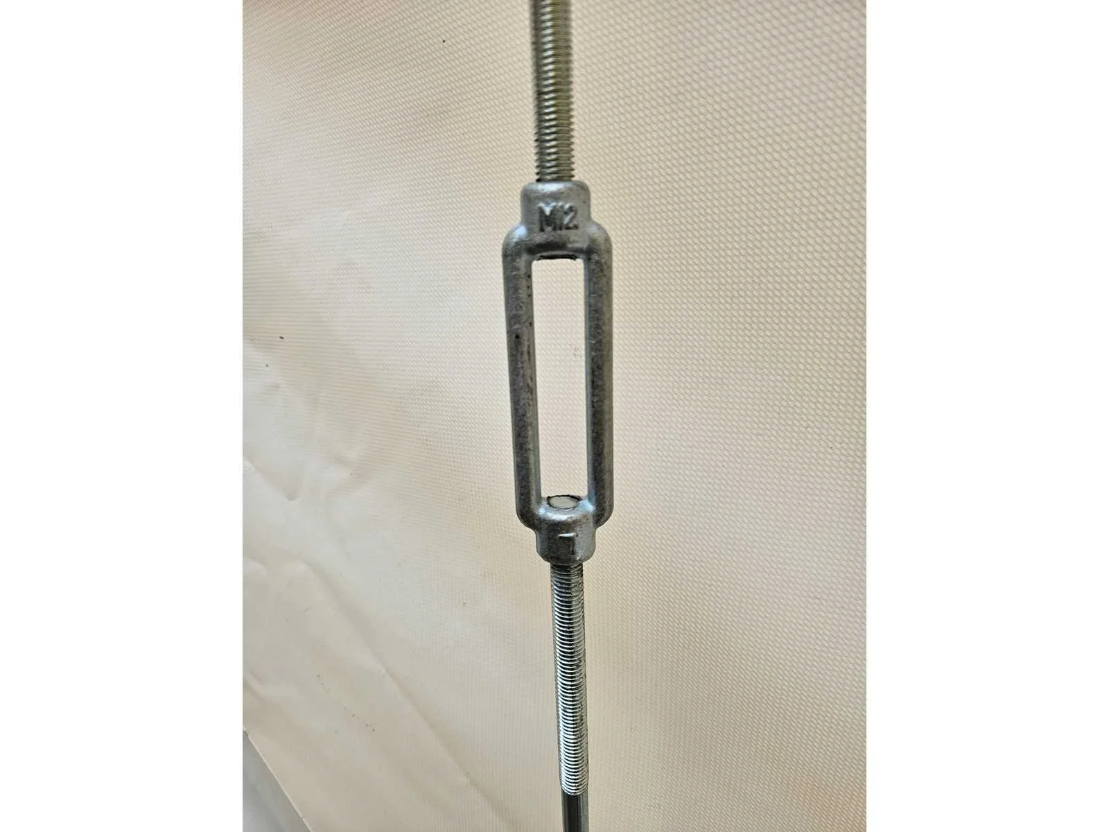 Vrije overspanning van 12000 mm; vakmaat 2500 mm; totaal 8 vakken van 2500 mm; nokhoogte 6000 mm; volblad verzinkte constructie; ongebruikte constructie met nieuw zeil; compleet met druk en trek stangen; voet platen en klein materiaal; wordt netjes verpakt door verkoper; Totaal oppervlakte: 240m² Nok hoogte: 6000mm